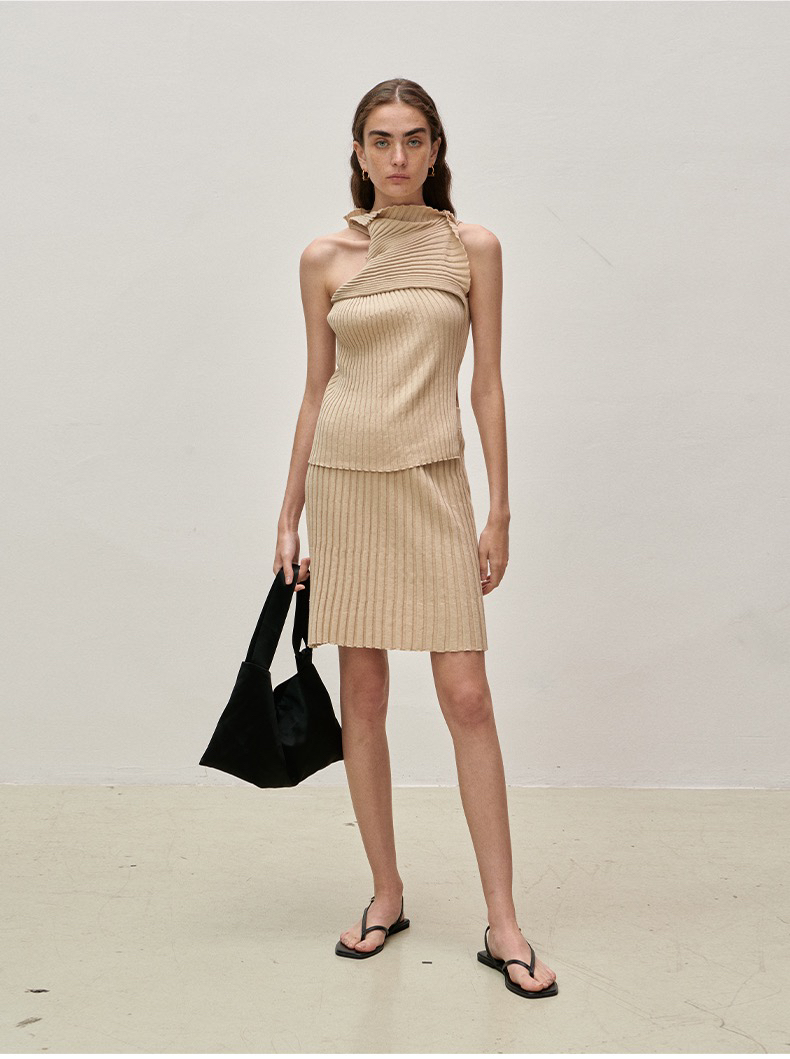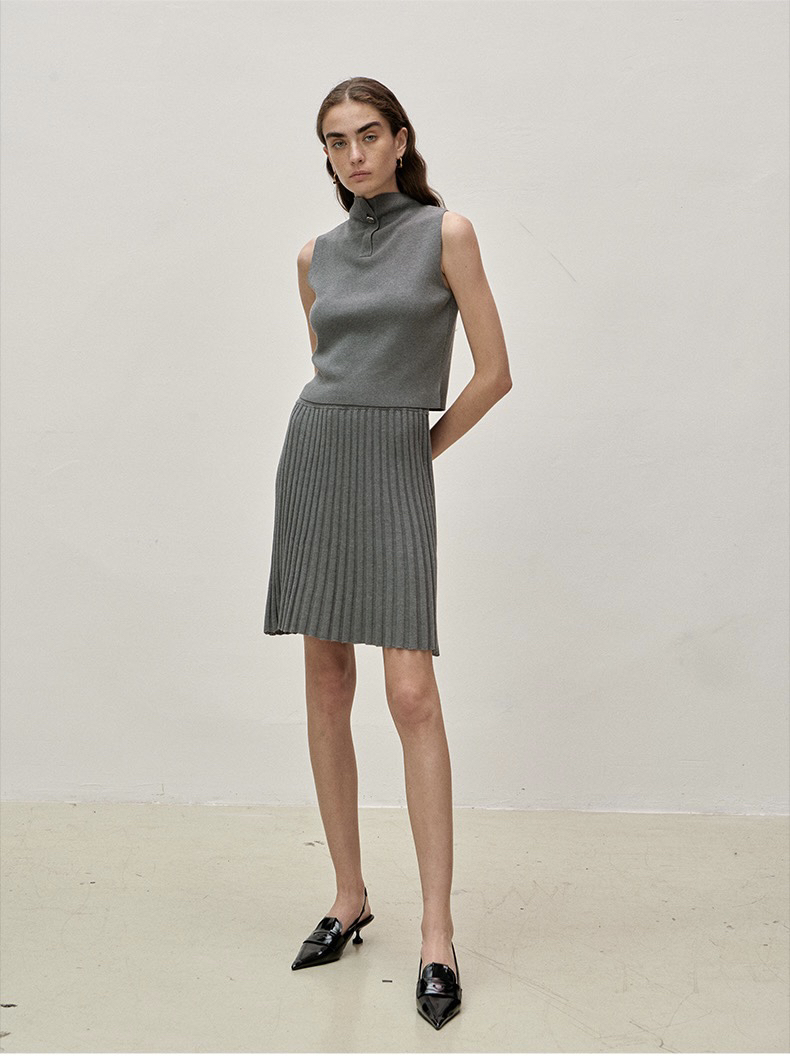 Viktoria Chan | SS23050 Shelby short knit skirt [ 针织半裙 灰 / 卡其 ]