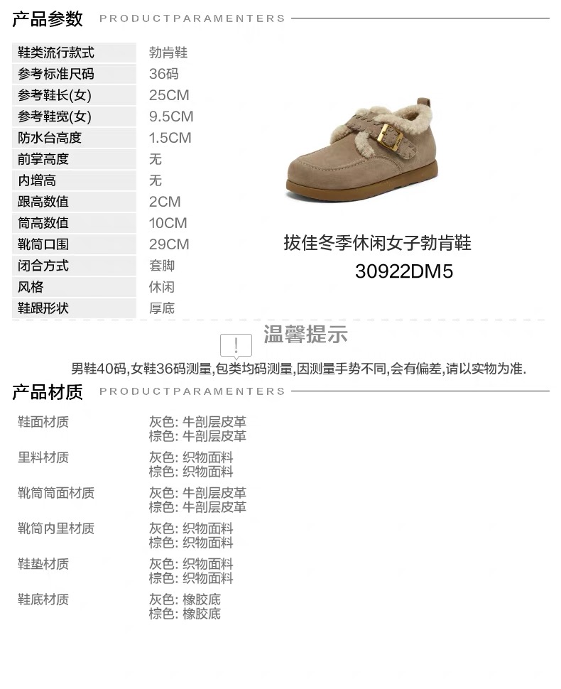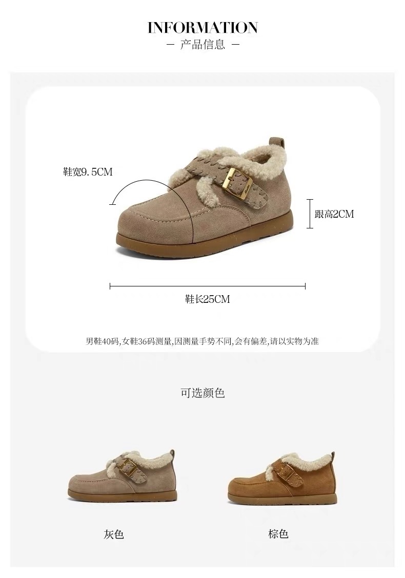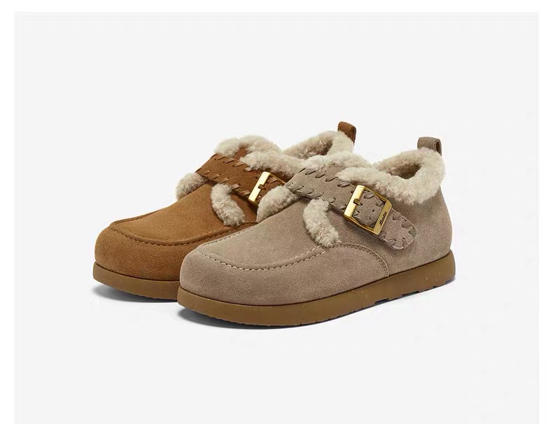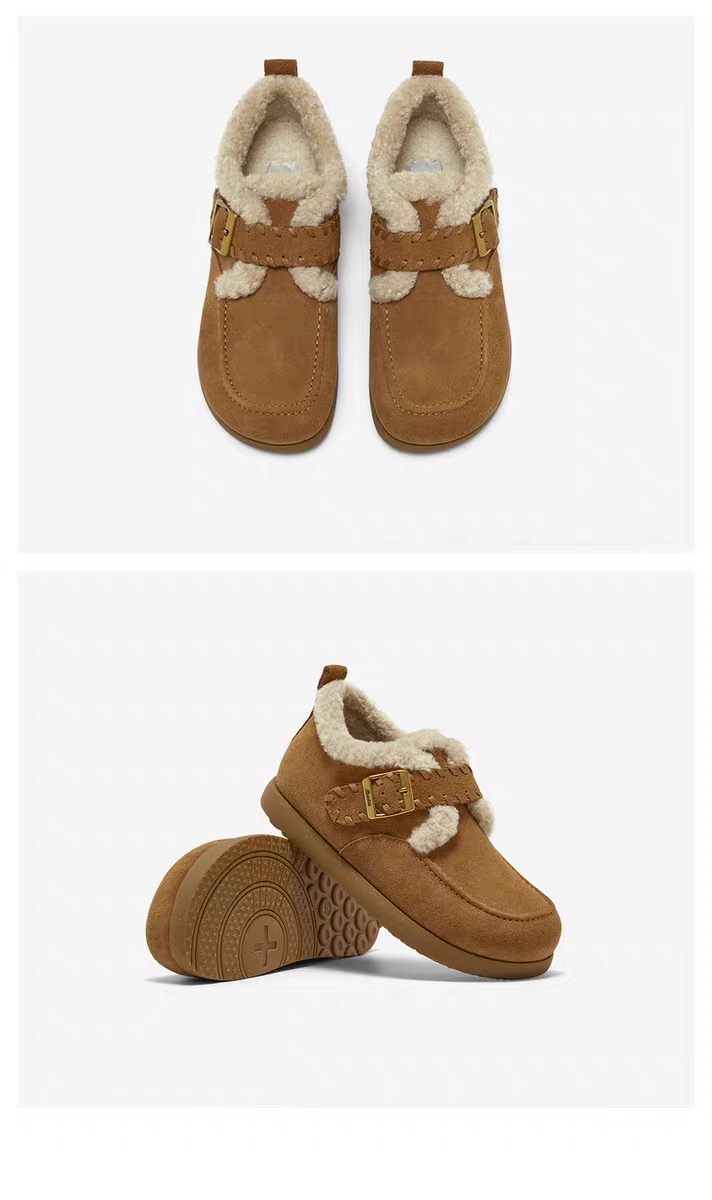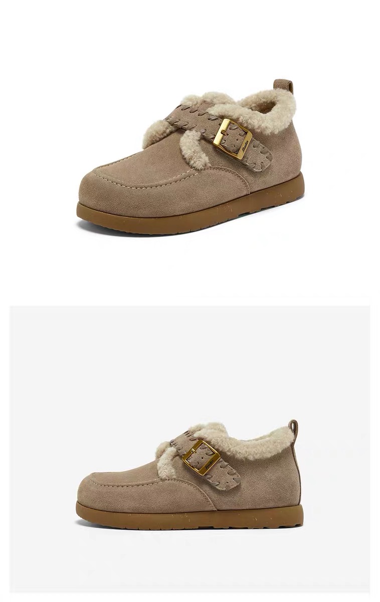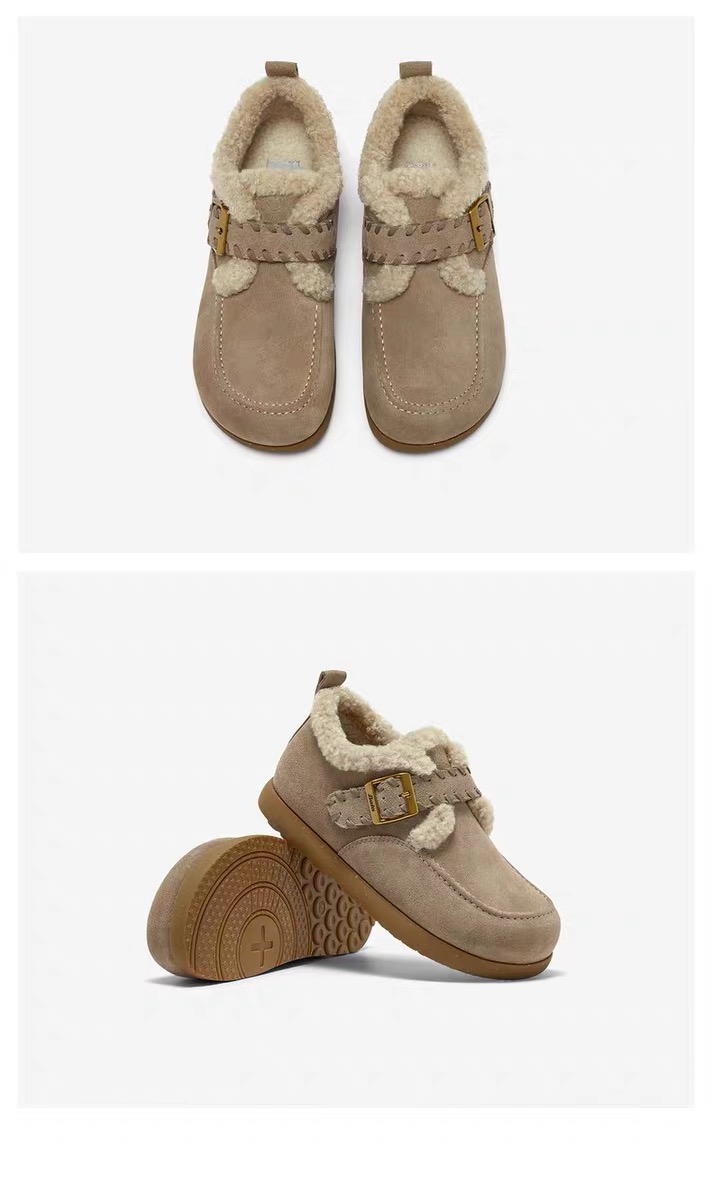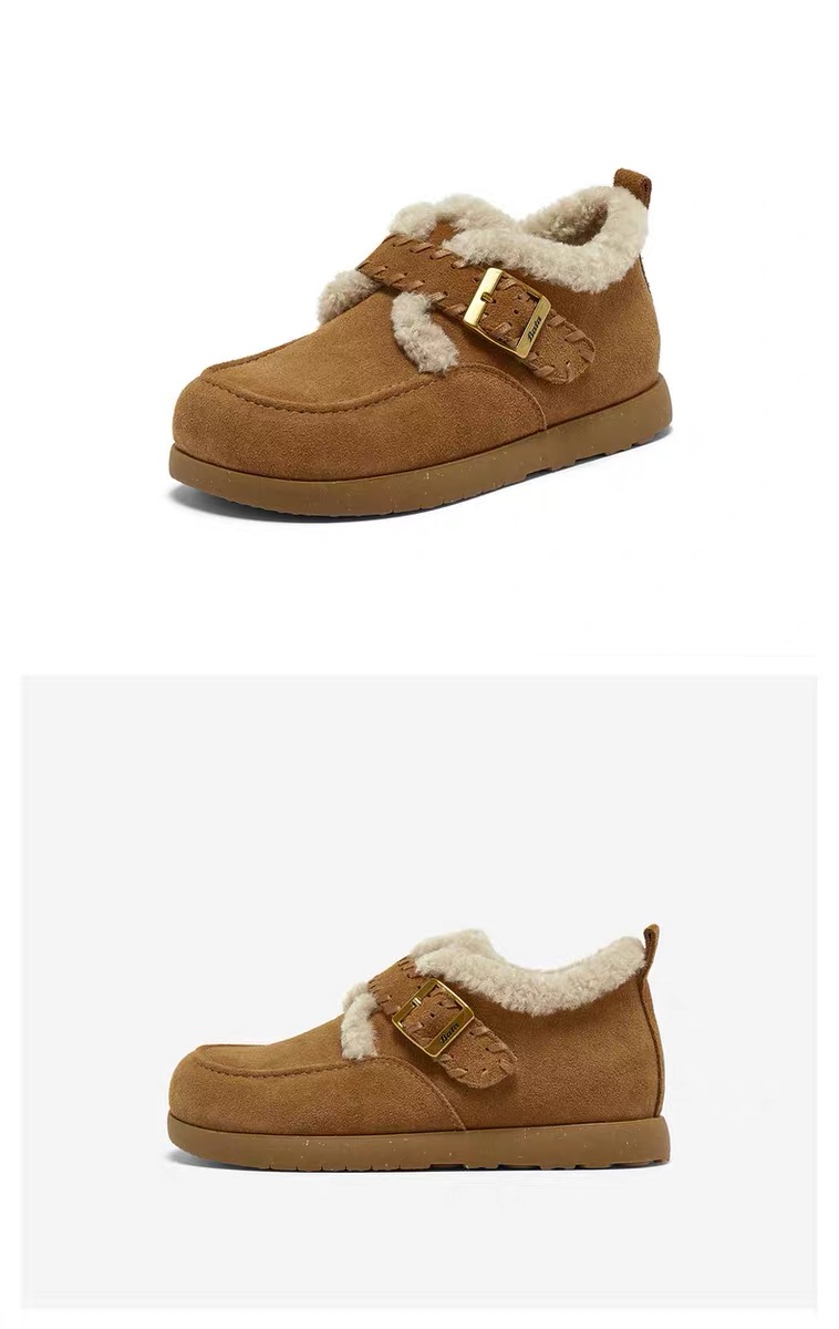 【云粉节】【拔佳】BF楼Bata勃肯毛毛鞋女2025冬款英伦牛剖皮通勤保暖单鞋30922DM5 吊牌价899 活动价569