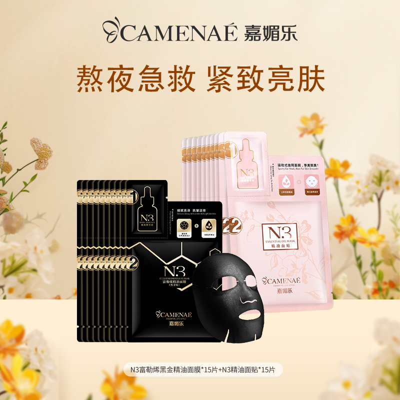 【社群福利】嘉媚乐N3富勒烯黑金精油面膜*15片+N3精油面贴*15片 紧致弹嫩 补水锁湿 深层清洁 提亮暗沉