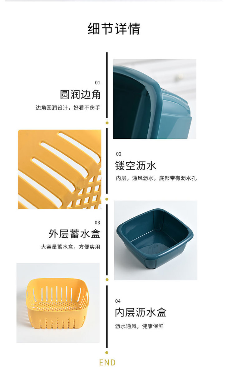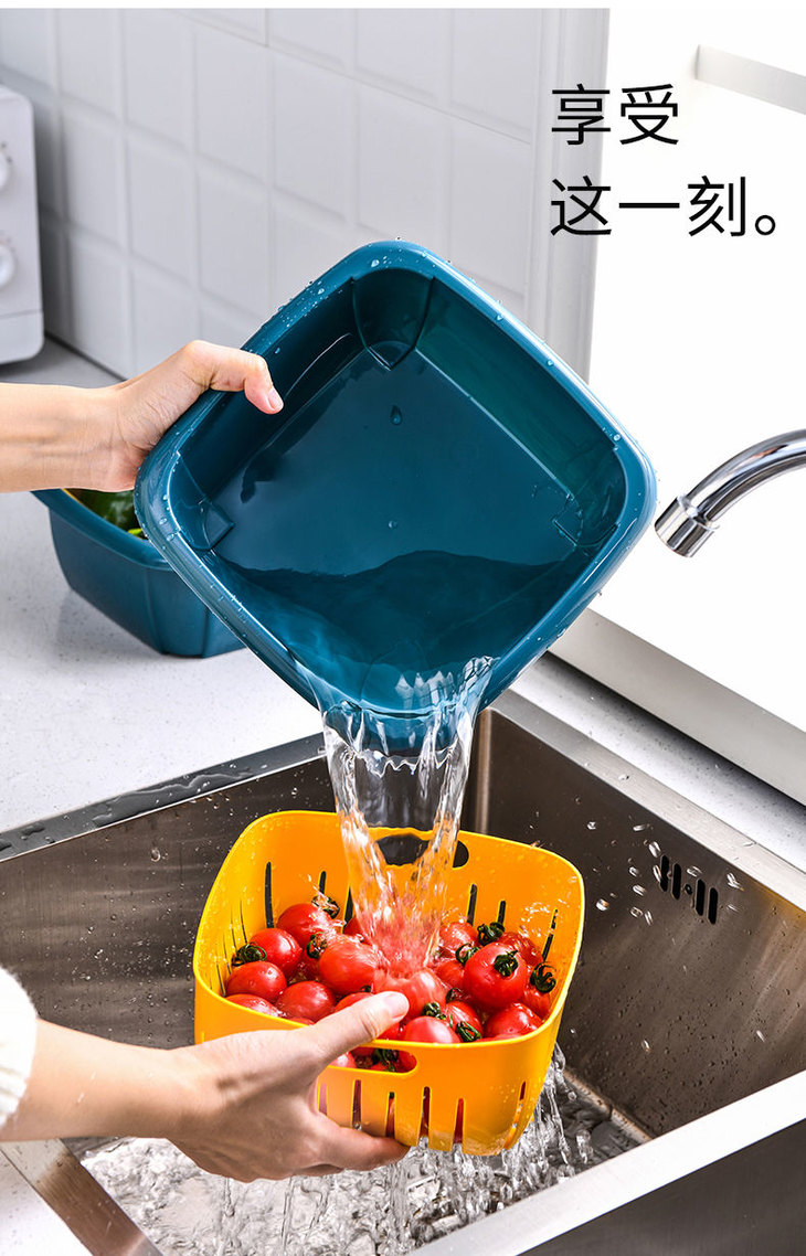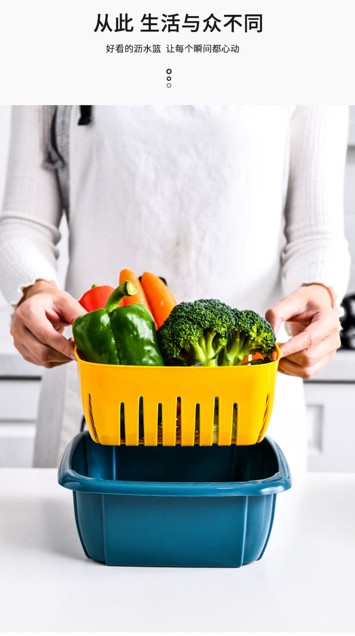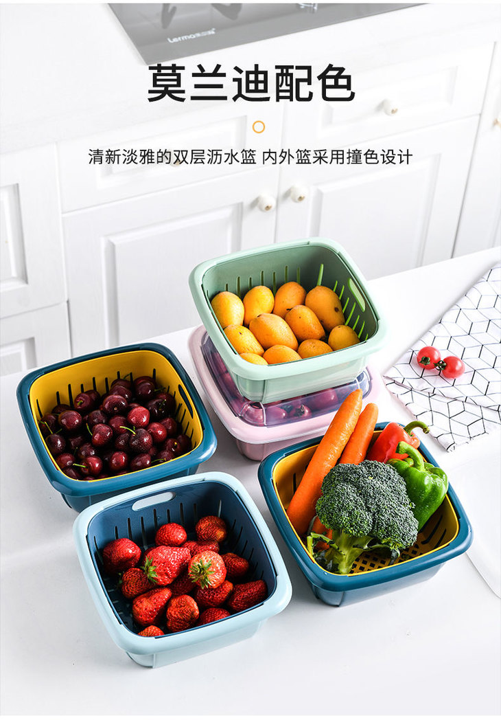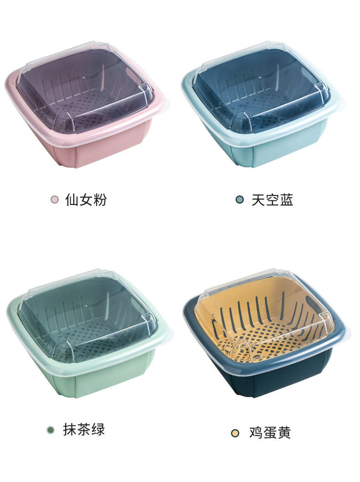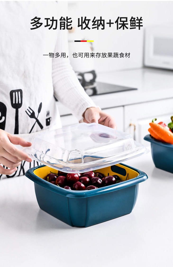 【团购特惠】双层撞色沥水保鲜盒 多功能家用冰箱收纳 厨房蔬菜水果沥水篮