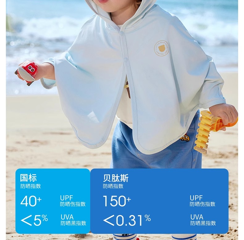 贝肽斯婴儿防晒衣UPF150+春夏新款男女童宝宝冰丝防晒斗篷小月龄
