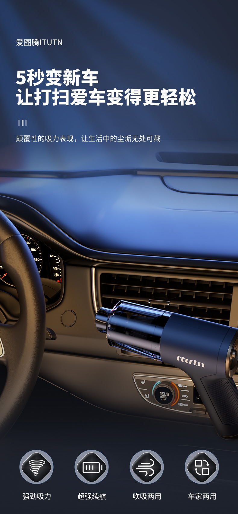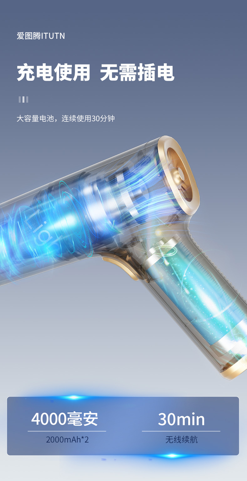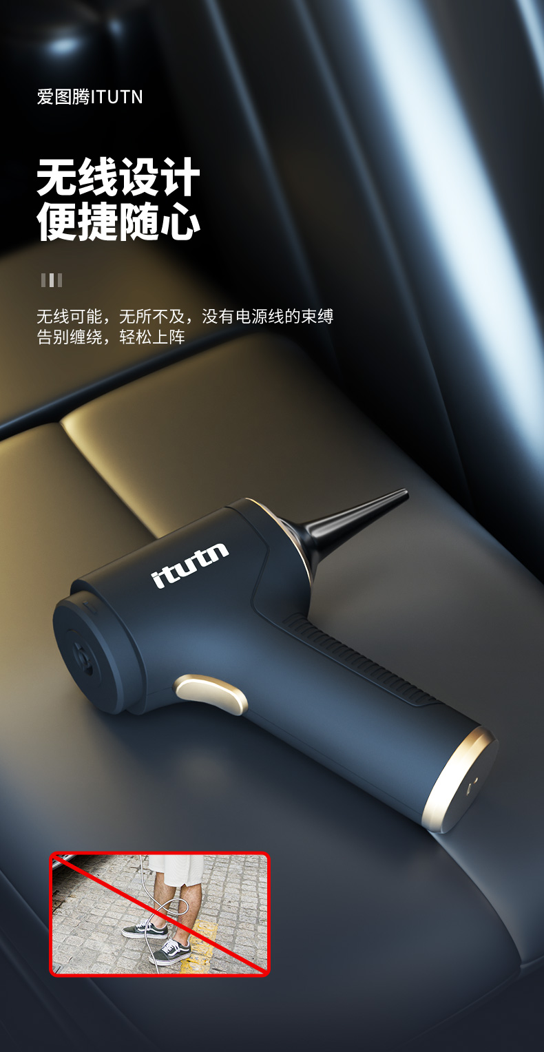 【吹吸充抽四合一】爱图腾 5000pa无线车载家用小型手持吸尘器