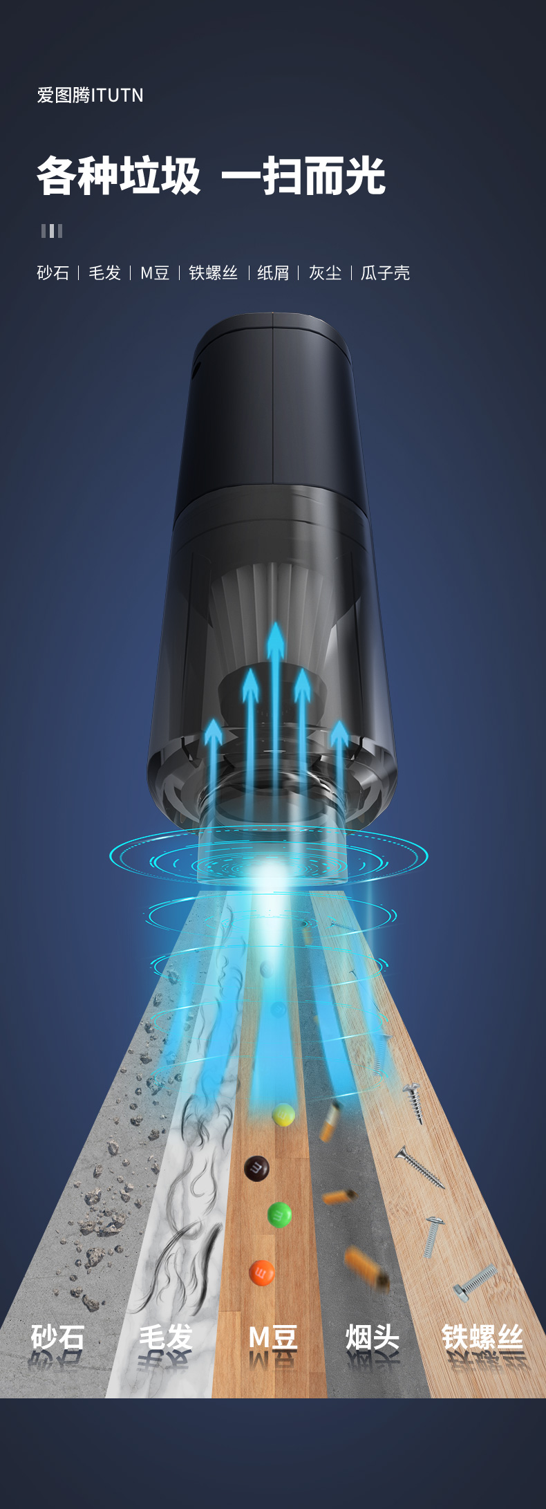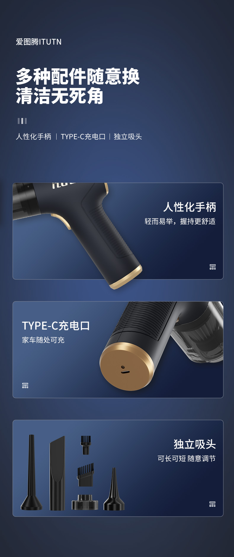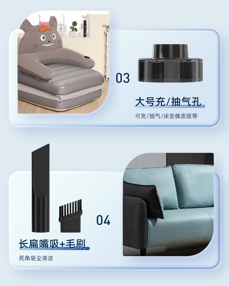 【吹吸充抽四合一】爱图腾 5000pa无线车载家用小型手持吸尘器