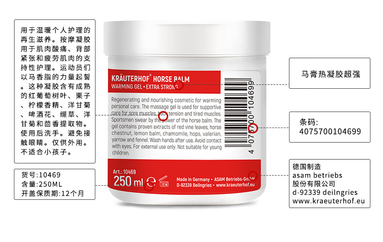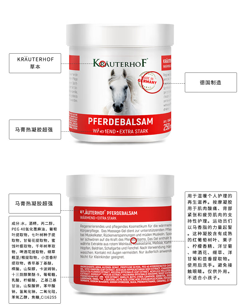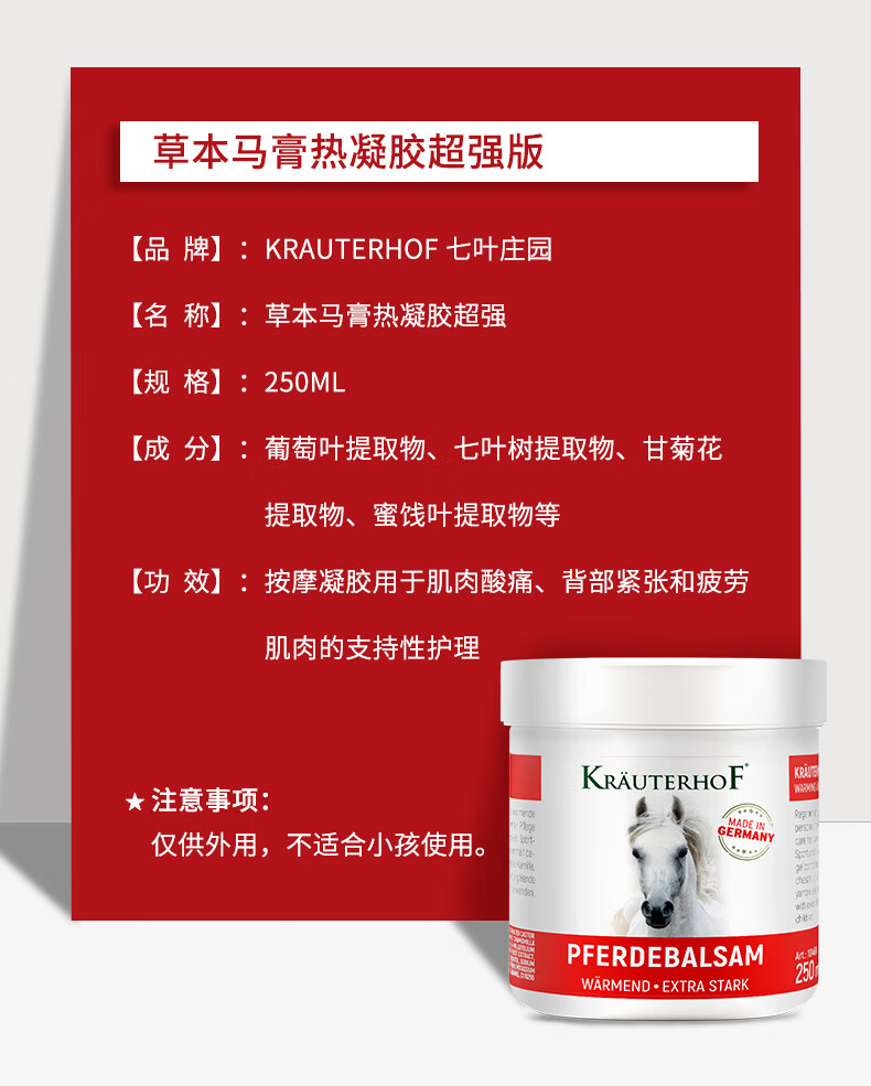 28年6月 德国Krauterhof七叶庄园马膏按摩凝胶马膏250ml(热)
