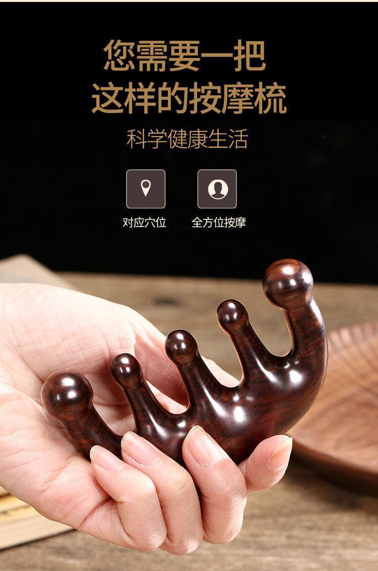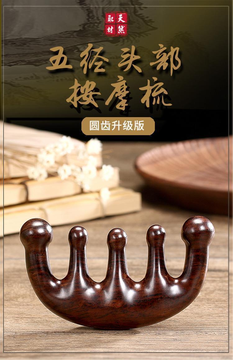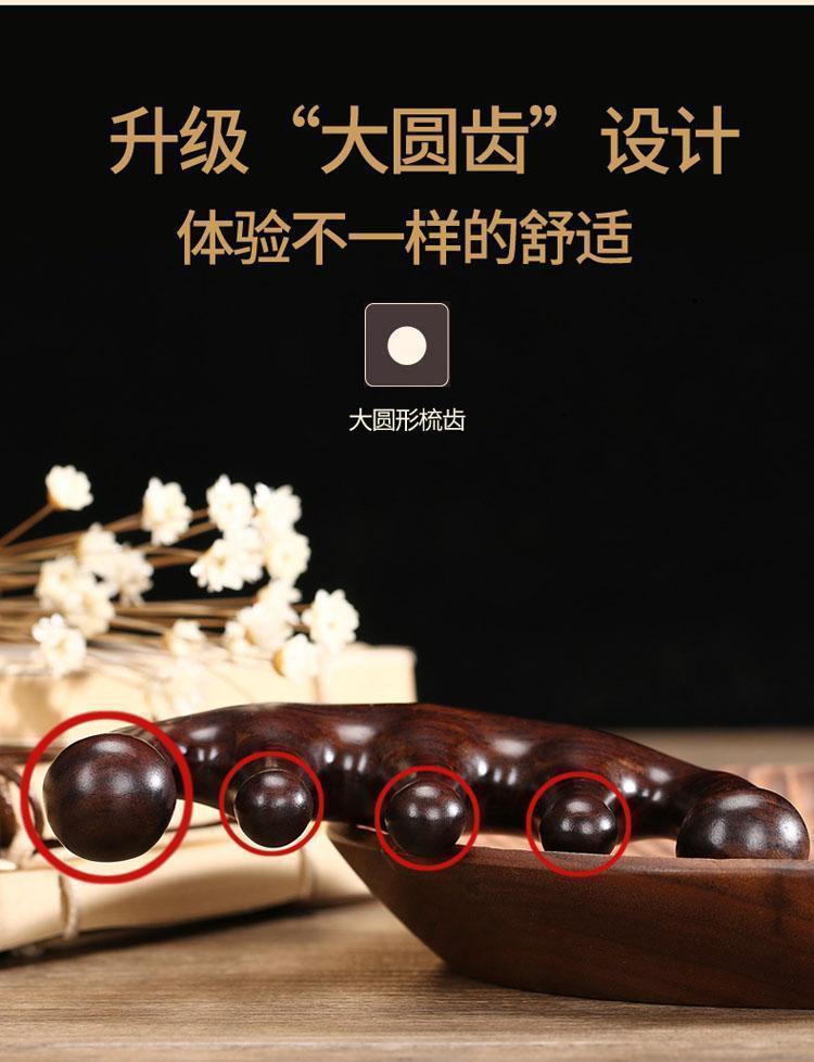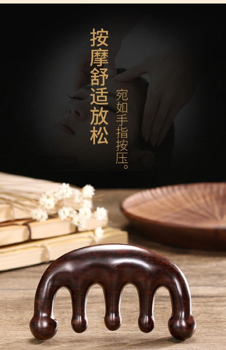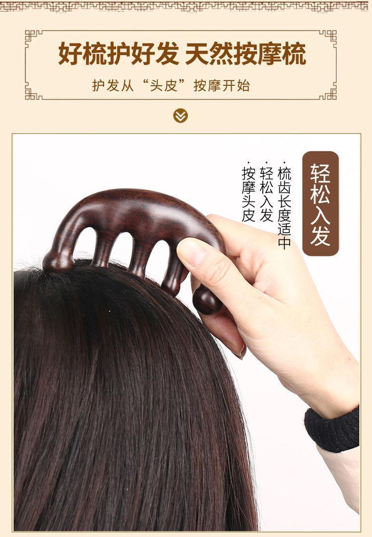 【体验不一样的舒适!金丝五齿球头按摩梳】梳背厚实不易折断,360°无棱角打磨,头部经络按摩梳绿檀头疗梳子