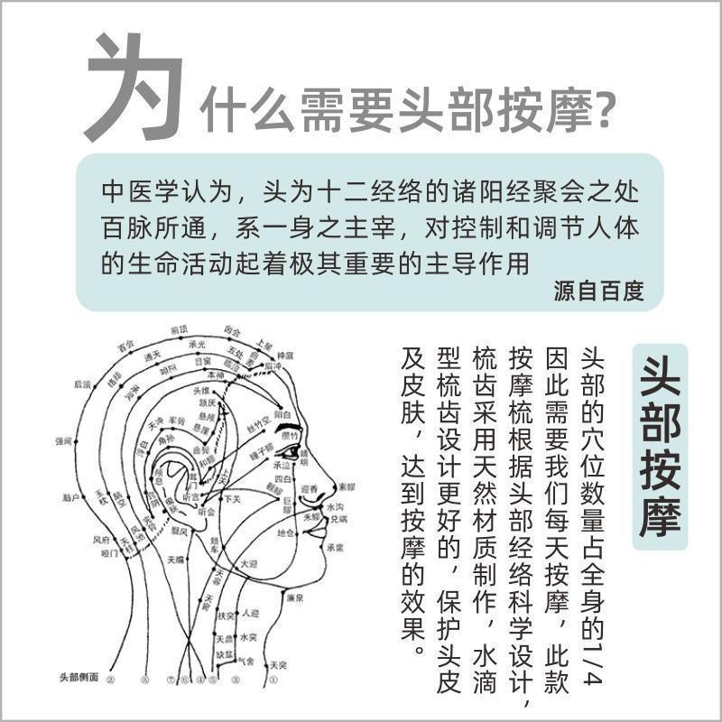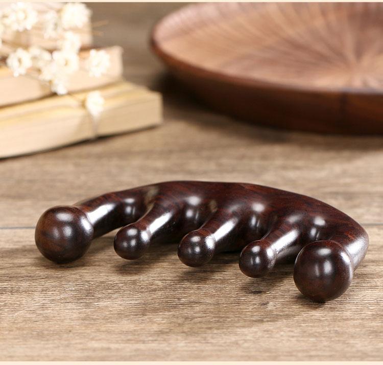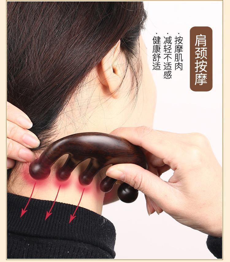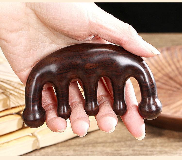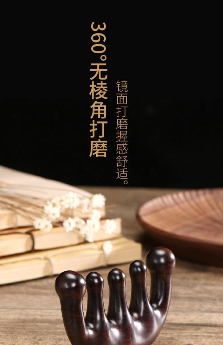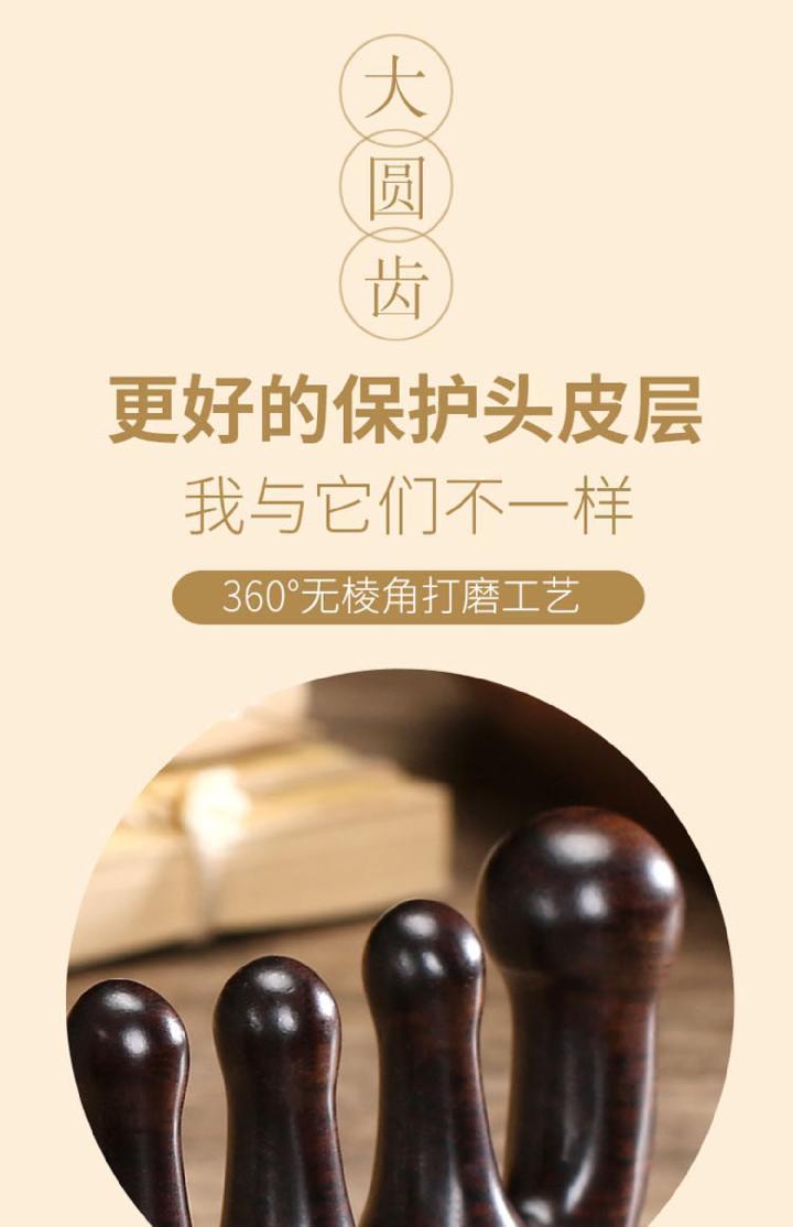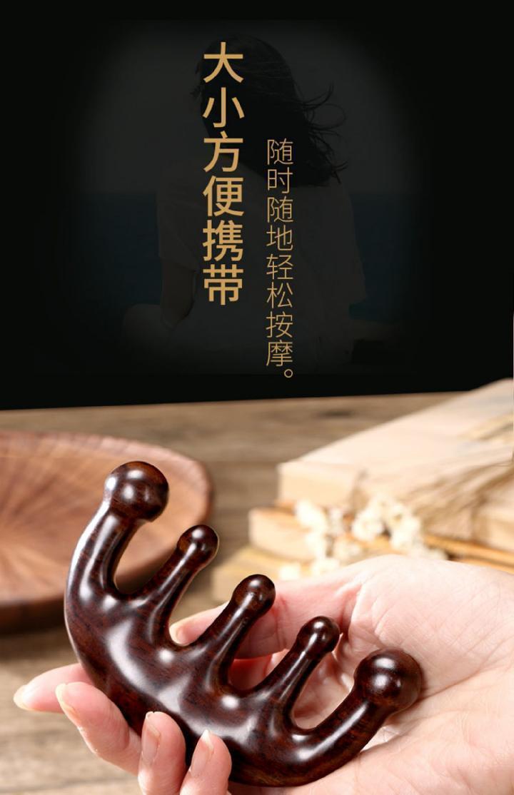 【体验不一样的舒适!金丝五齿球头按摩梳】梳背厚实不易折断,360°无棱角打磨,头部经络按摩梳绿檀头疗梳子