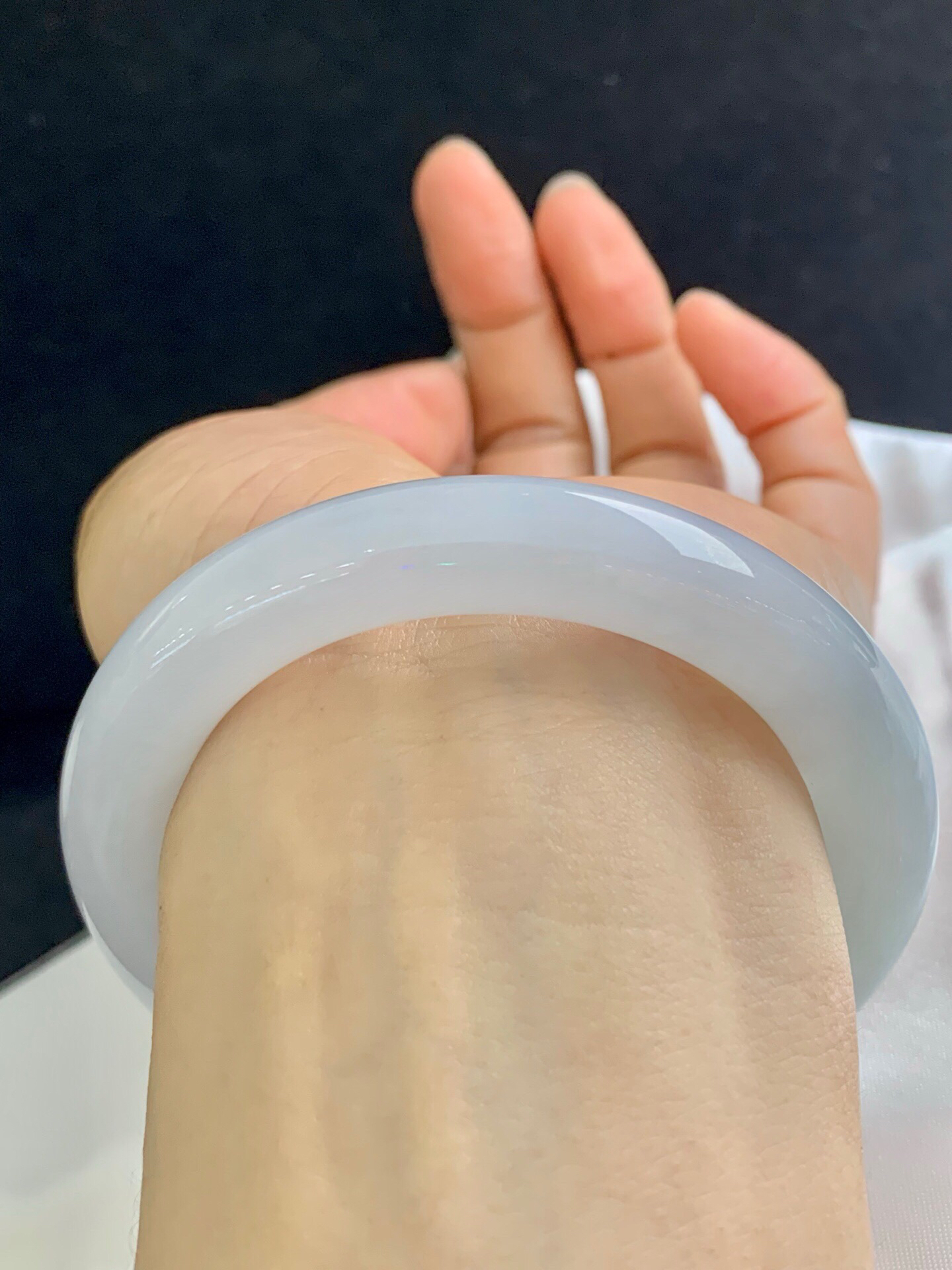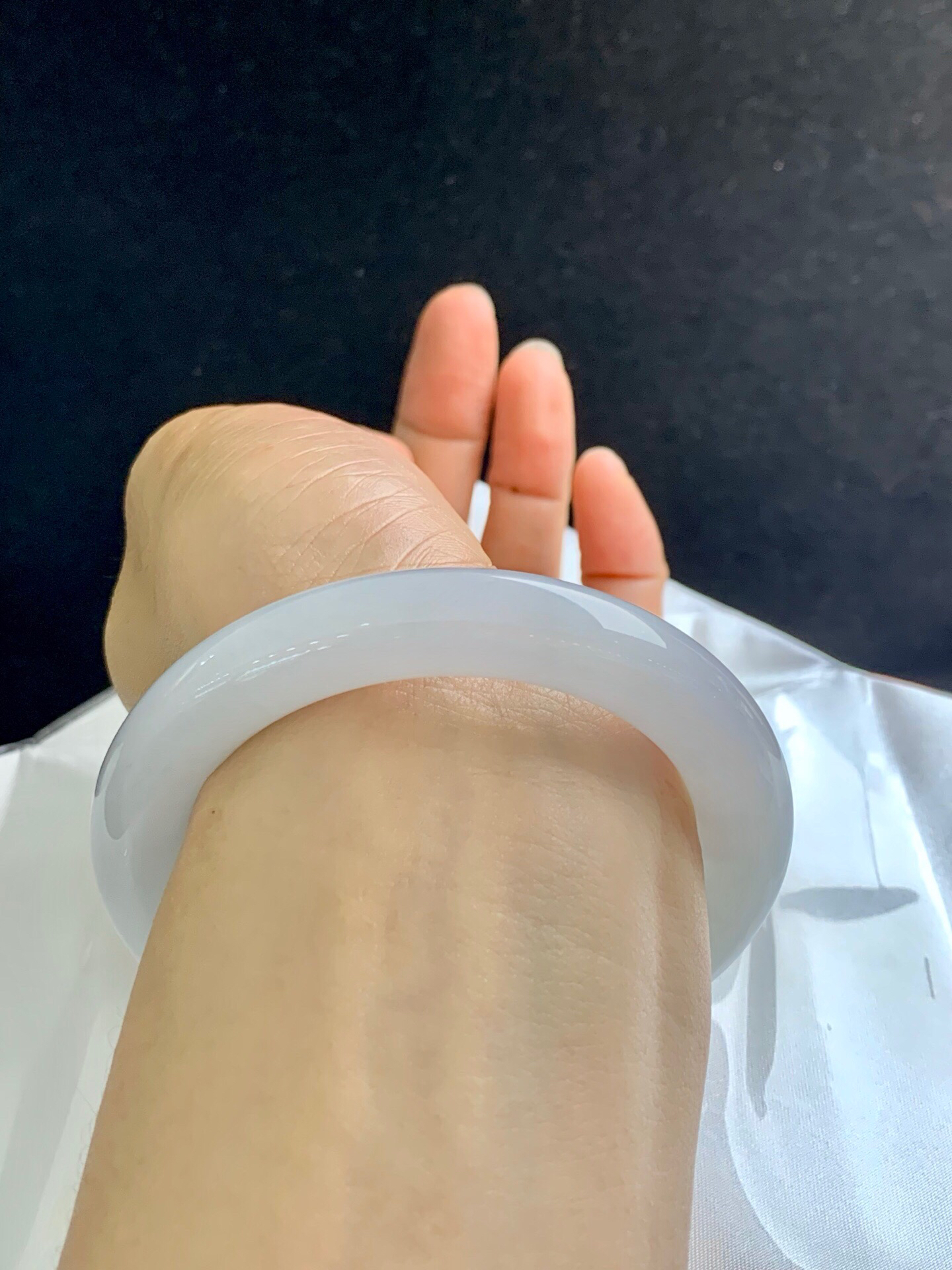 620008,56圈口,糯化白月光圆条,淡晴底色,整体偏白接近白月光,底子细润水头好,干净