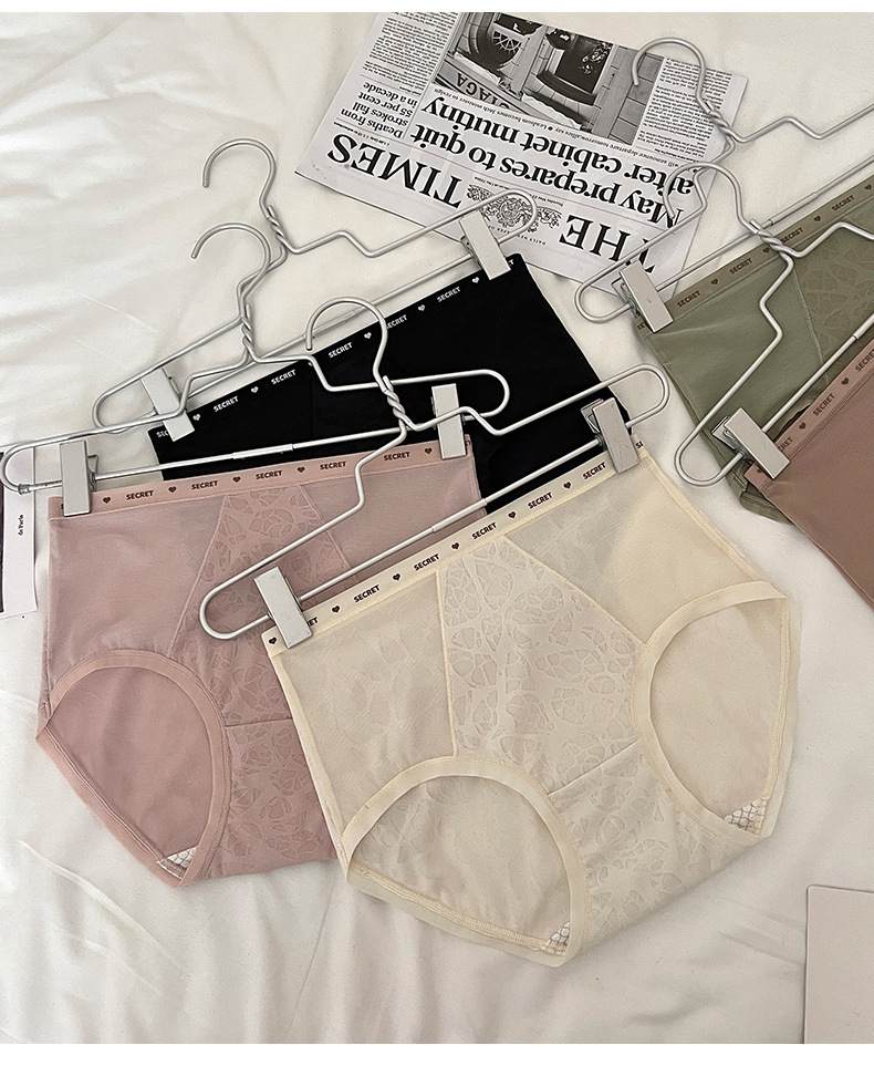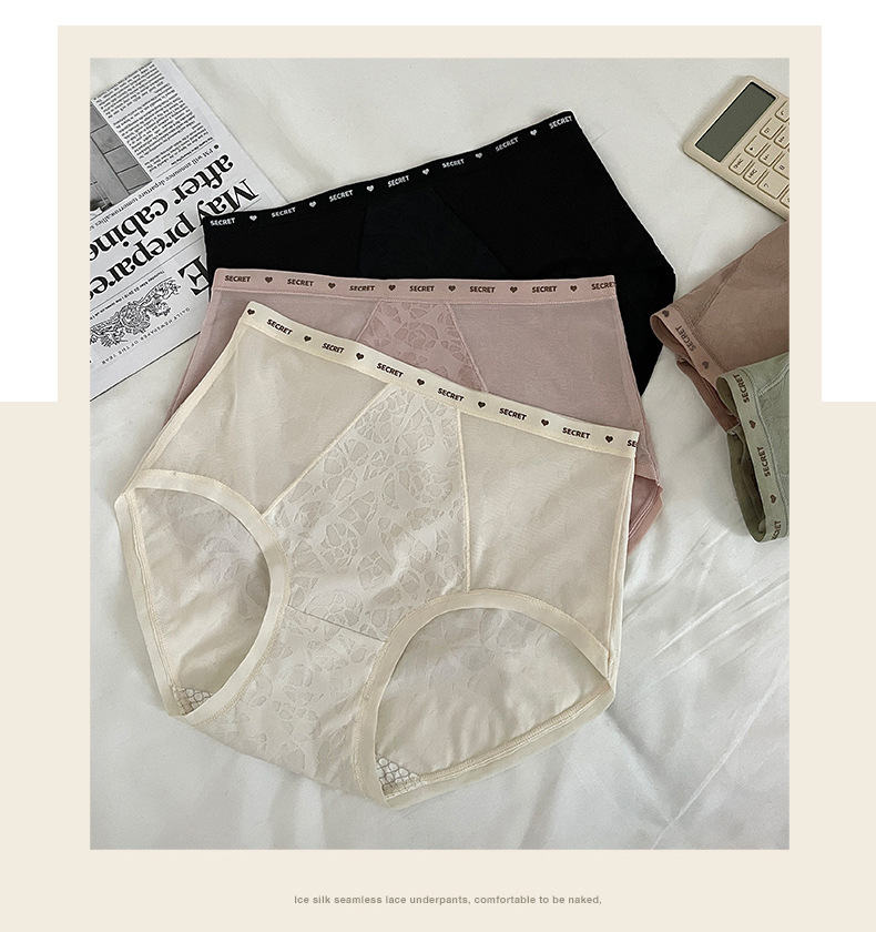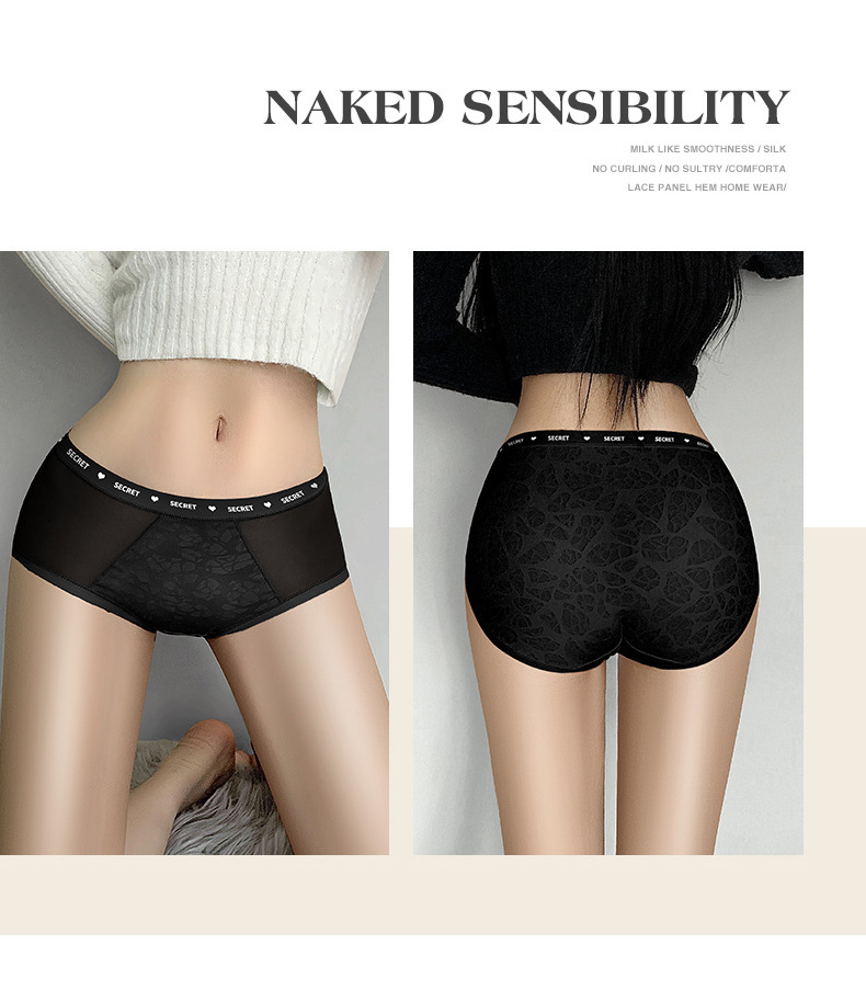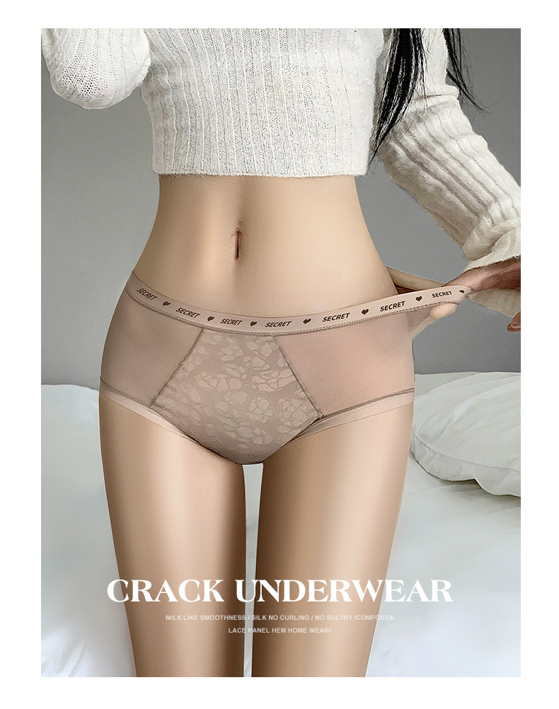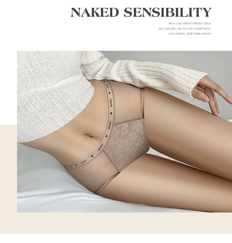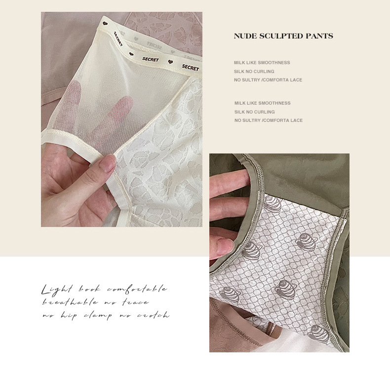 【裸感性感!多巴胺蚕丝乳酸裤】中腰蕾丝内裤 女士性感纯欲短裤头 无痕高弹提臀桑蚕丝 抑Jun裆内裤女