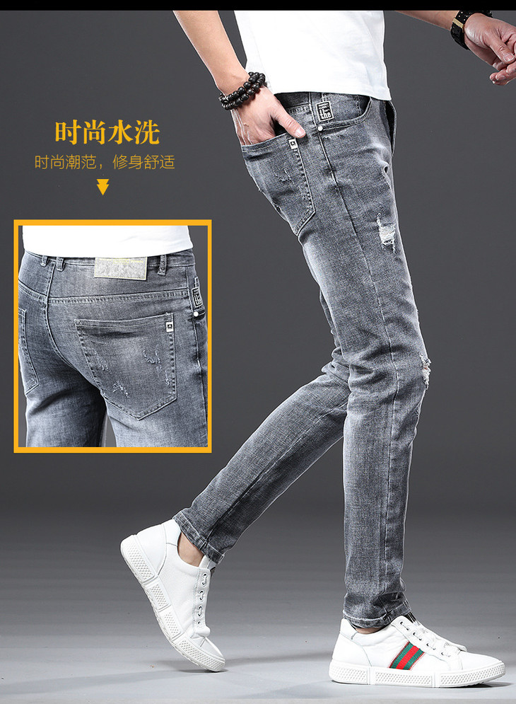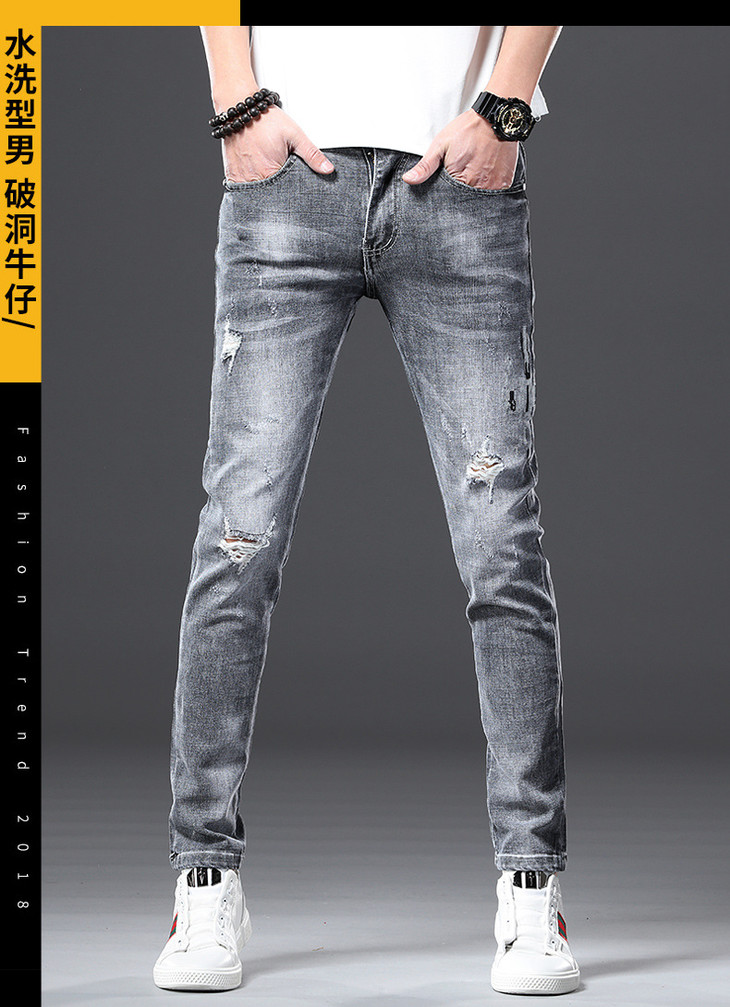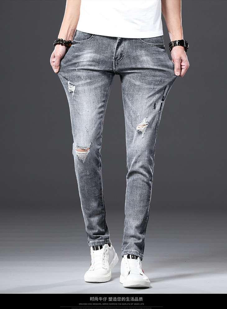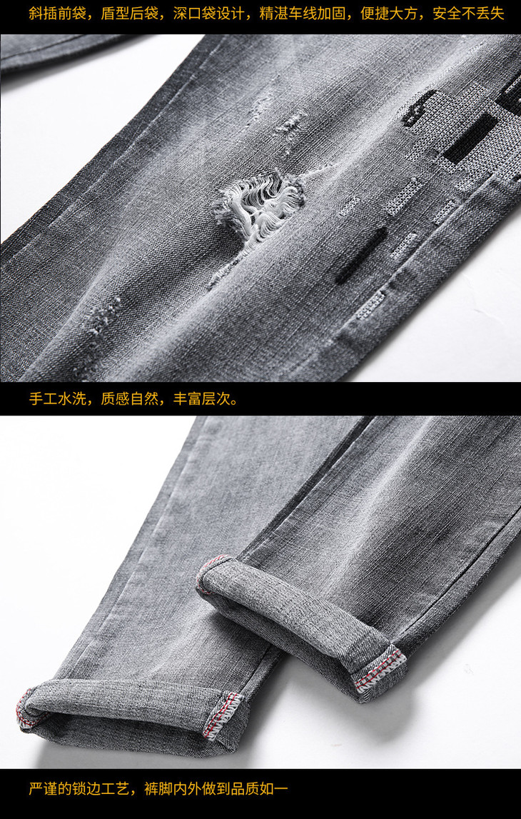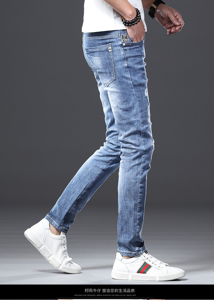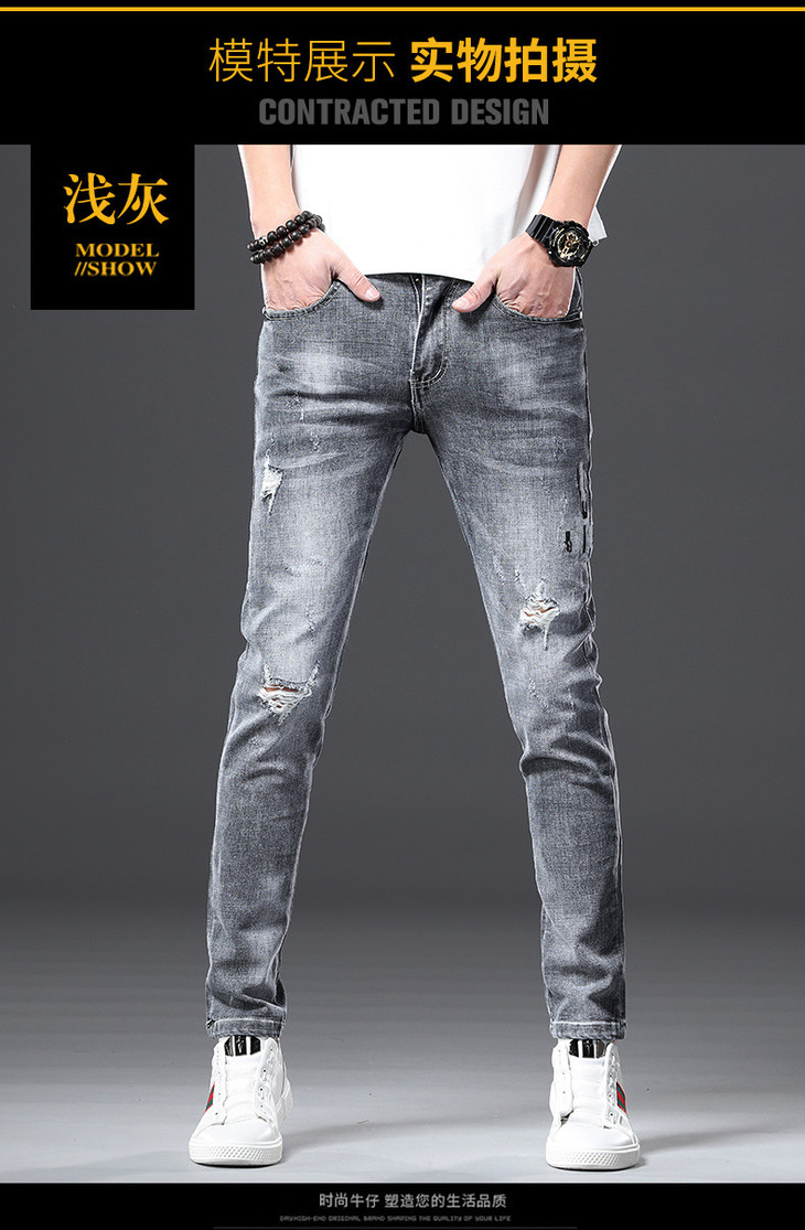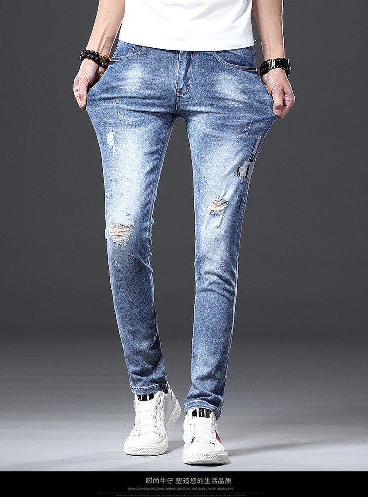 【服饰鞋包】男牛仔裤小脚春夏潮流破洞牛仔裤男弹力修身牛仔裤男潮牌