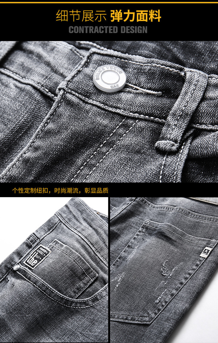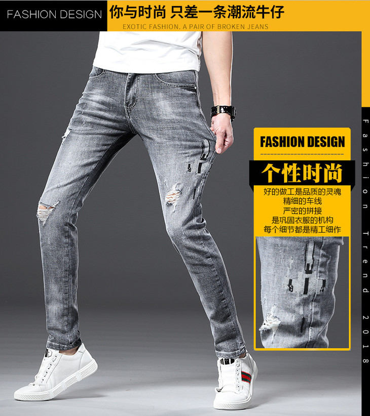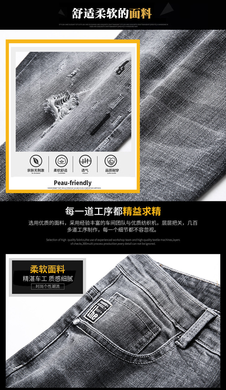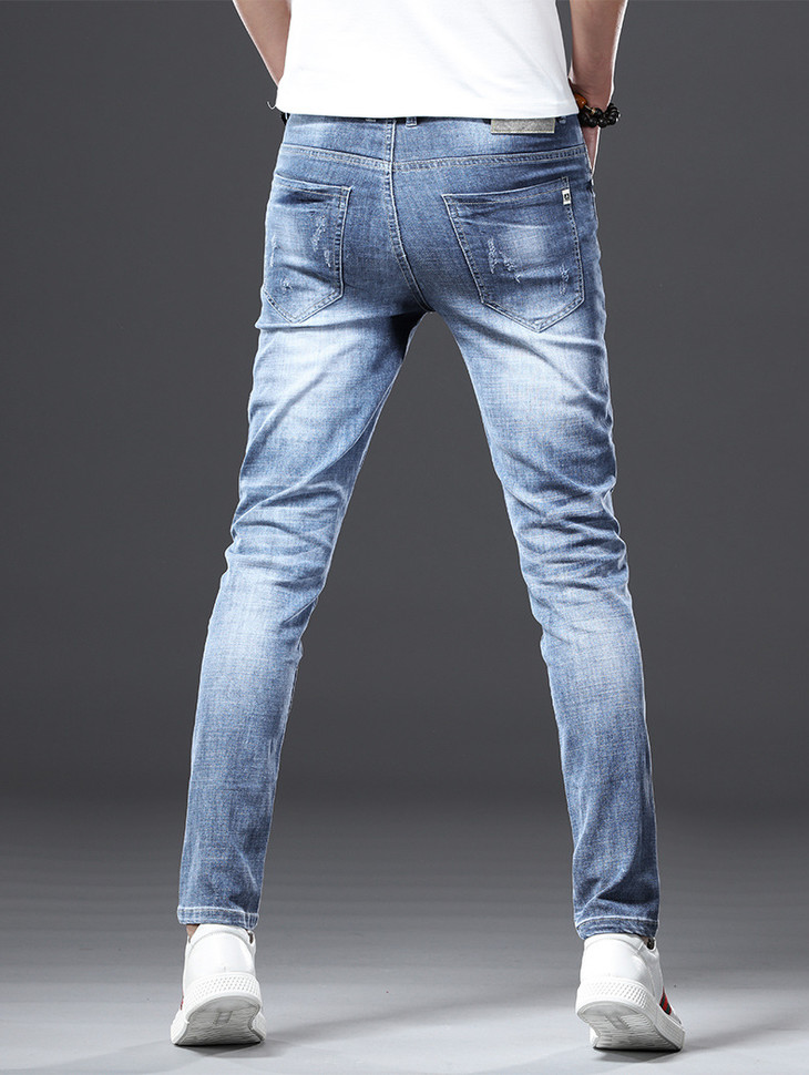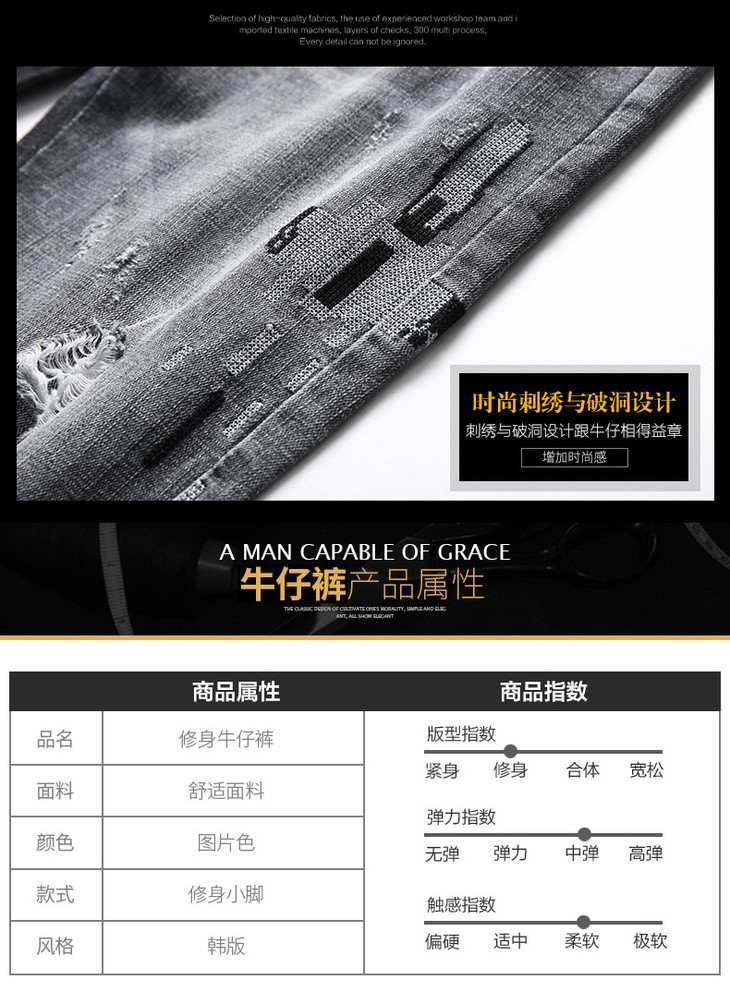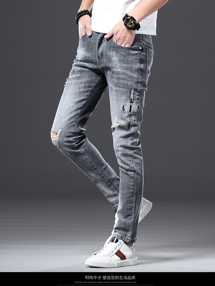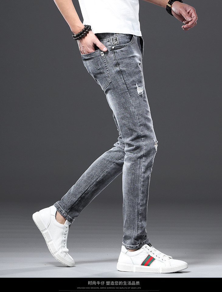 【服饰鞋包】男牛仔裤小脚春夏潮流破洞牛仔裤男弹力修身牛仔裤男潮牌