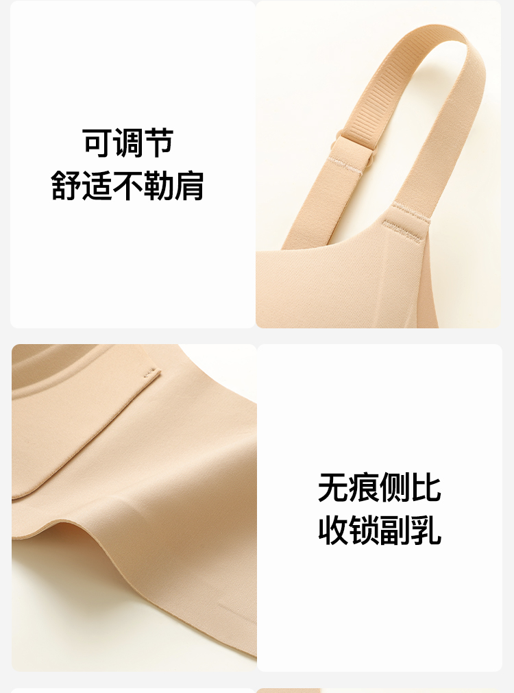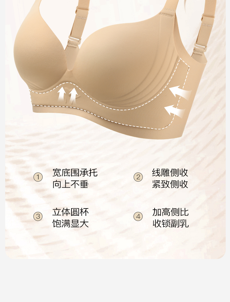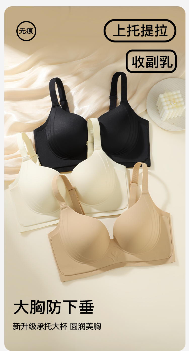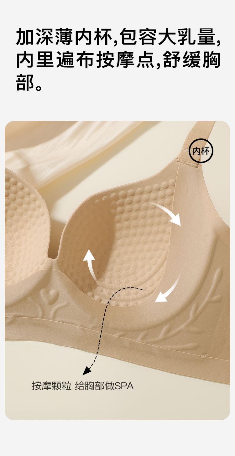 【大码聚拢防垂】无痕舒适按摩杯薄杯内衣女侧收副乳美背文胸669栀璃芳菲