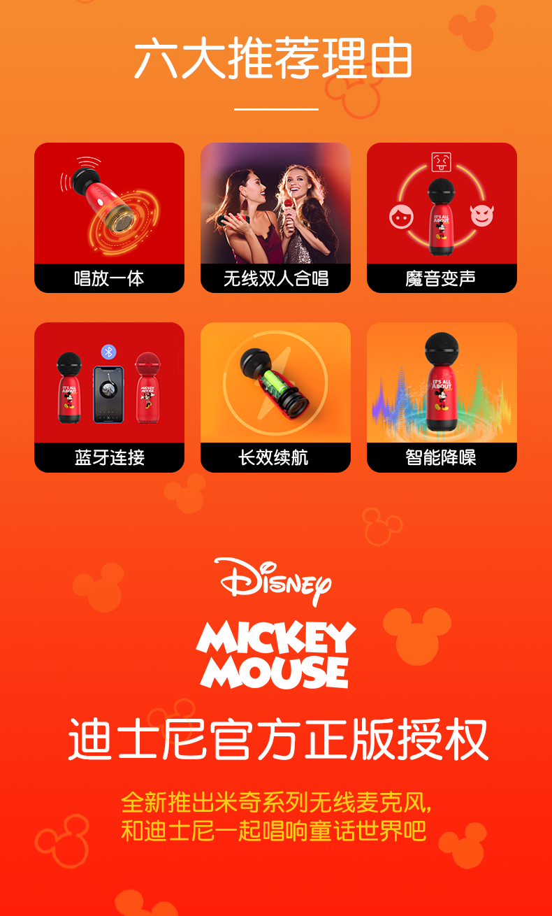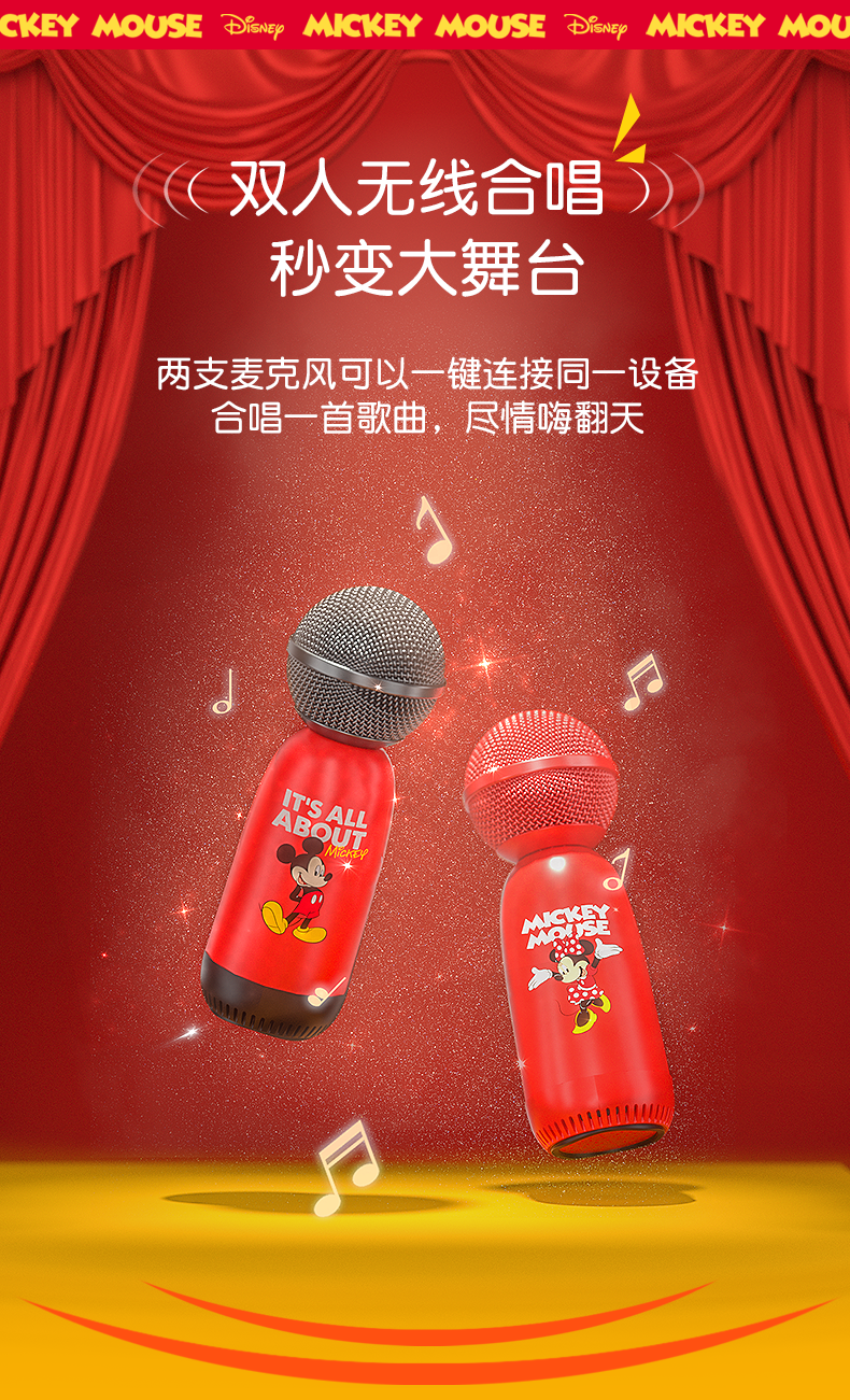 【儿童】Disney迪士尼无线麦克风 音响一体 适用唱吧全民K歌直播家用儿童蓝牙话筒