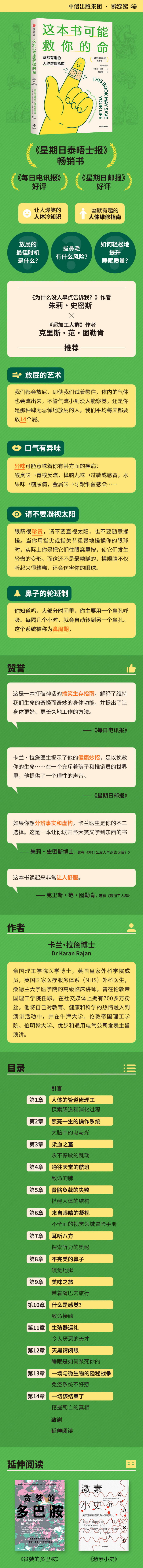 这是一本打破神话的搞笑生存指南,解释了维持我们生命的奇怪而奇妙的身体功能,并提出了让身体更好、更长久地工作的方法。——《每日电讯报》卡兰·拉詹医生揭示了他的健康妙招,足以挽救你的生命……在一个充斥着骗子和推销员的世界里,他提供了一个理性的声音。——《星期日邮报》