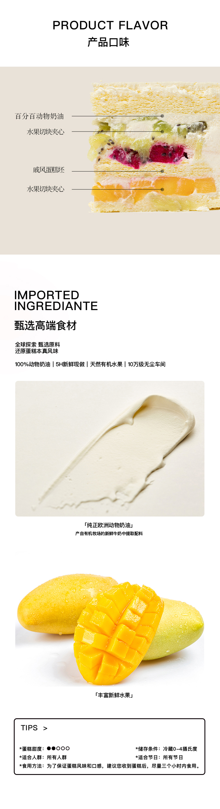 芒果奶油版慕斯为百香果慕斯,慕斯版夹心均为芒果。