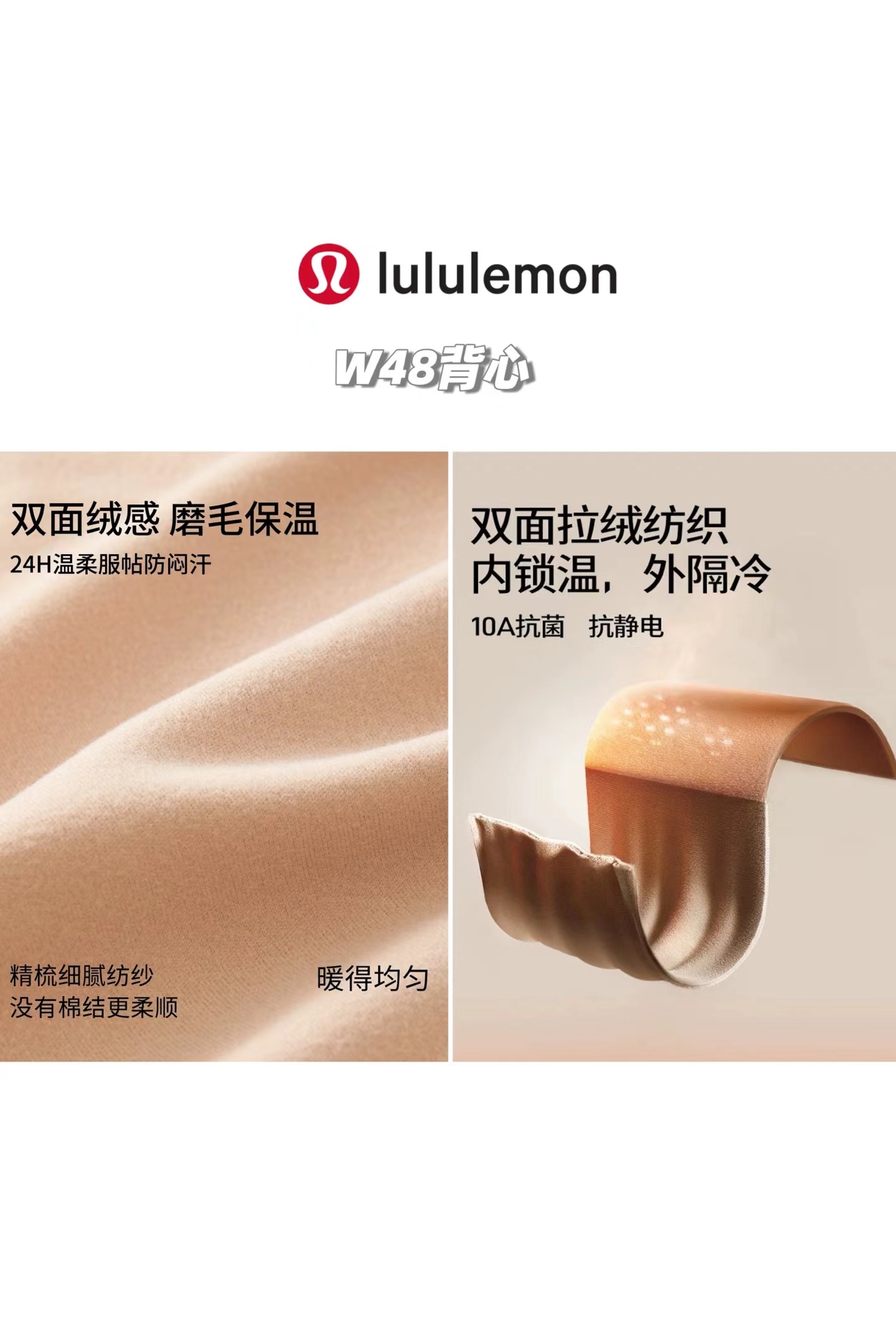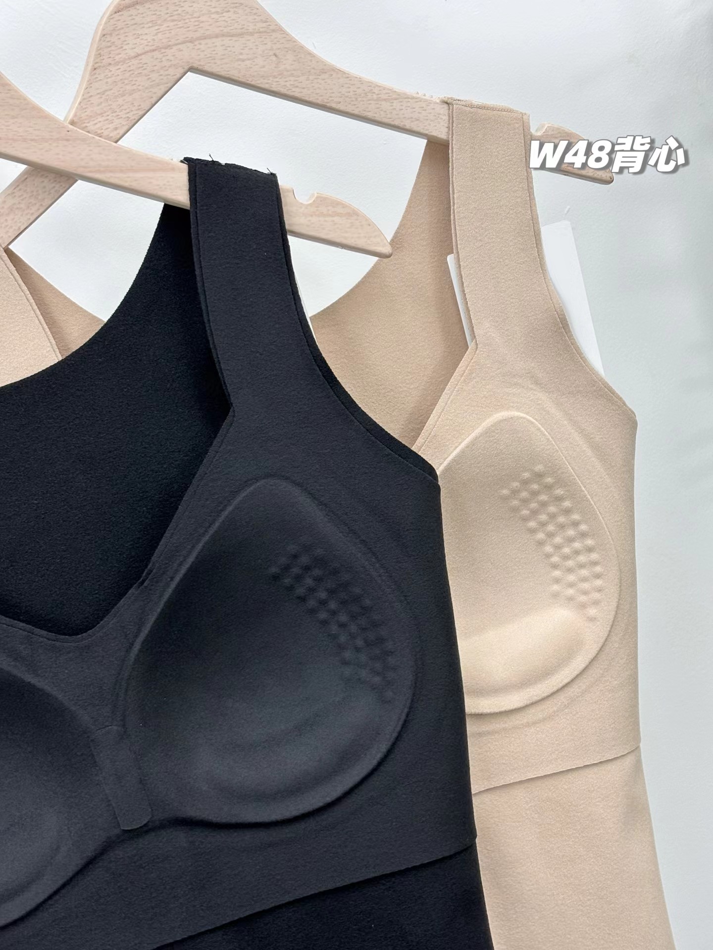 一包2件装,甄选好货,羊绒蛋白保暖背心!今冬新款德绒双面磨毛保暖打底背心,免穿内衣,带胸垫固定杯无痕保暖养肤内衣!真德绒面料+羊绒蛋白,上身相当舒适,保暖性强悍,法式固定杯!!真德绒面料,纳米级双面细柔羊绒蛋白,五倍亲肤蓄热!轻暖德绒,滋润养肤,吸收皮肤呼吸产生的湿气转化为热能,吸湿透气!双面磨毛,锁住温度,热量不易流失,保暖性超强!面料高弹不变形,自由拉伸不变形无勒感!法式固定杯,自然托胸,3D立体裁剪聚拢,舒适保暖二合一,相当于一件保暖背心+文胸啦,0负担,内置乳胶胸垫,免穿文胸,拒绝臃肿!修身显瘦,无痕无骨工艺,边缘平滑,不卷边不散边,上身巨舒服!今冬值的推荐的一款女士保暖背心,每个尺码有百来件,铁粉必入的款!