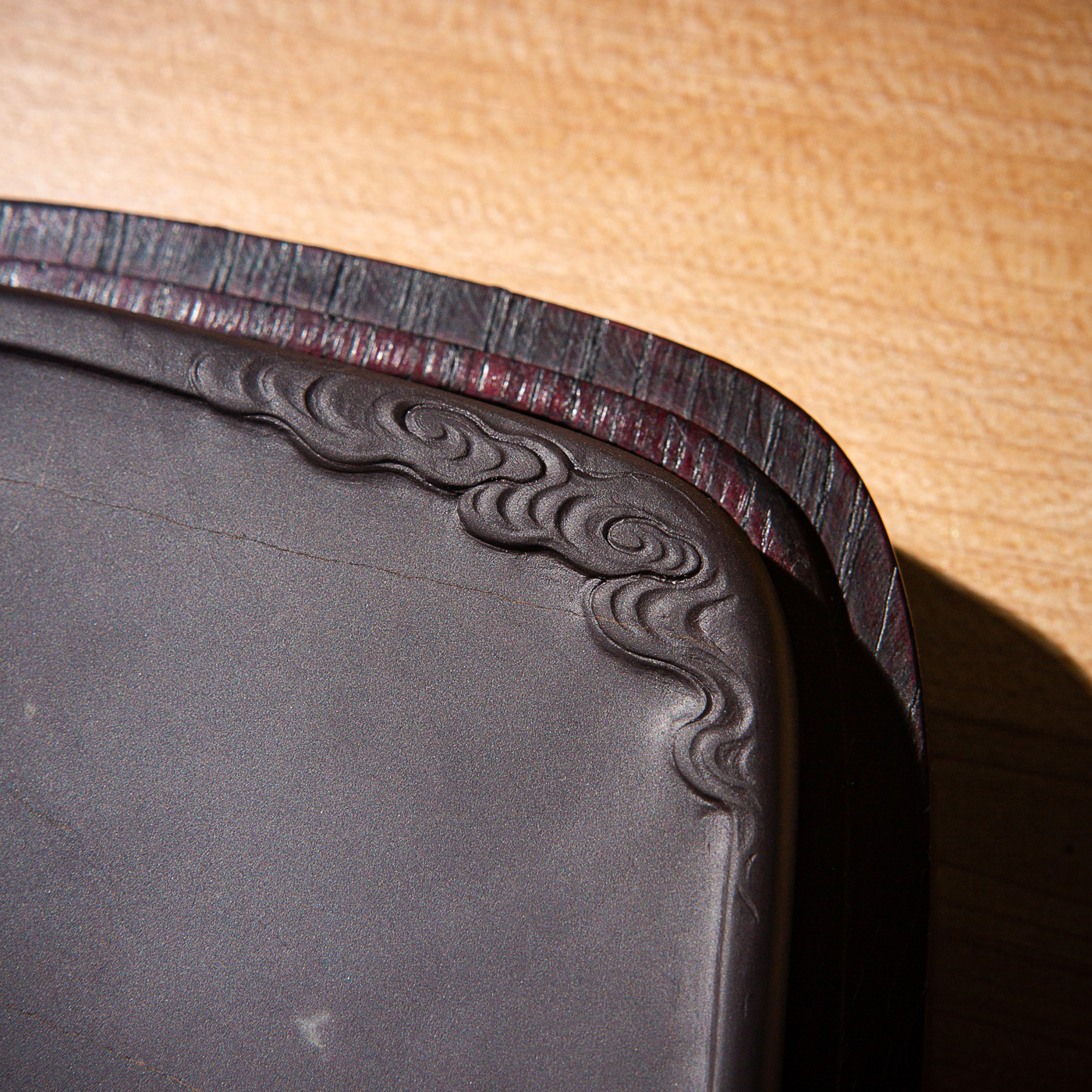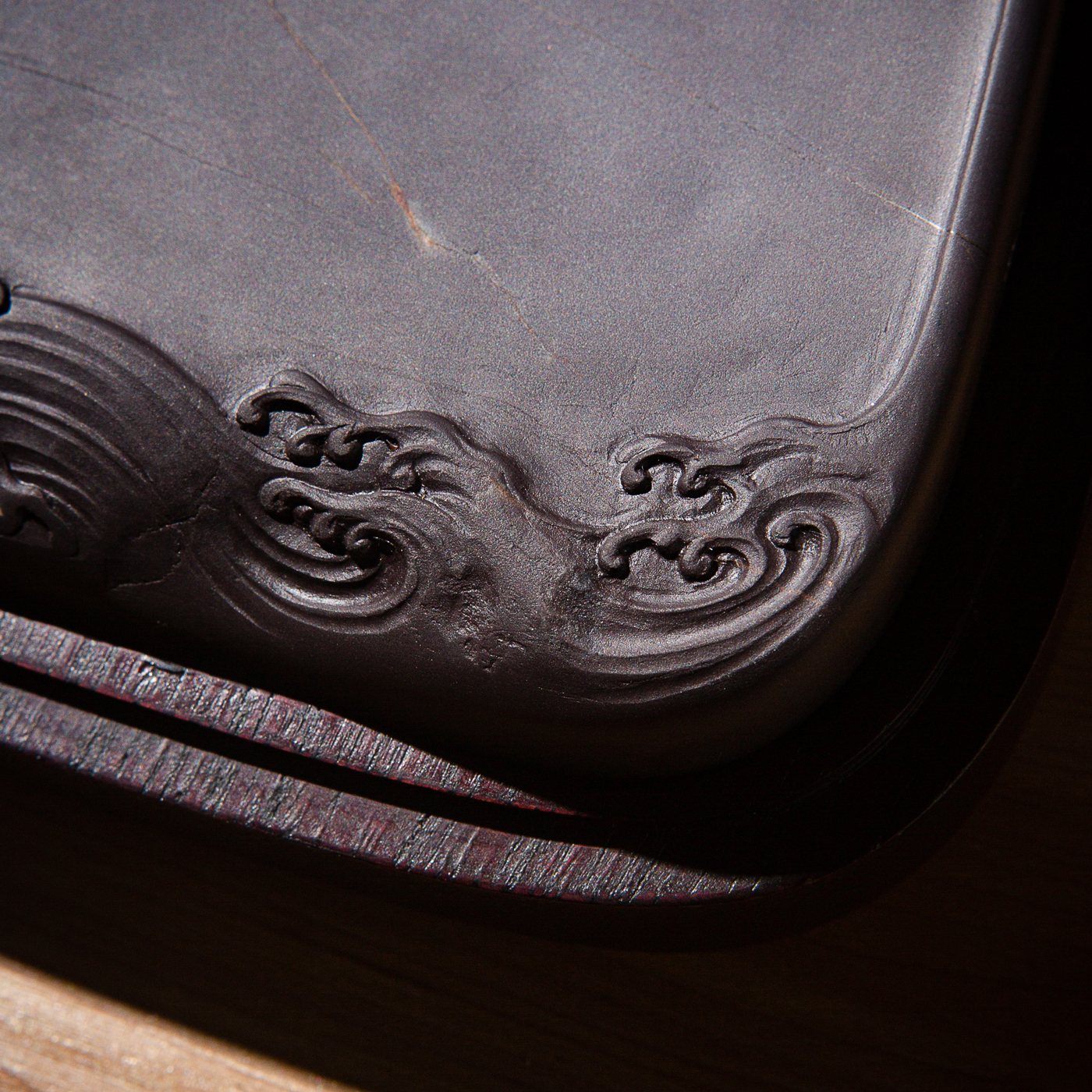 老坑端砚,质地温润,石品精美,雕工巧妙,文人气息浓郁,是案头之佳品。