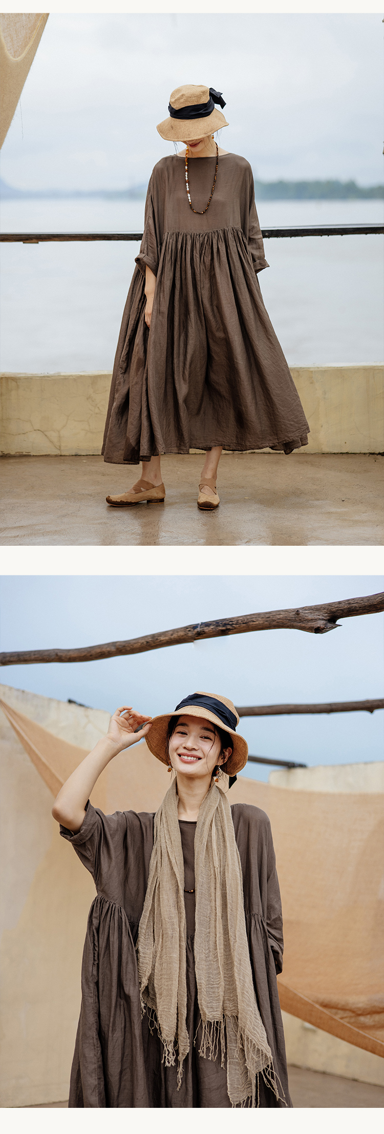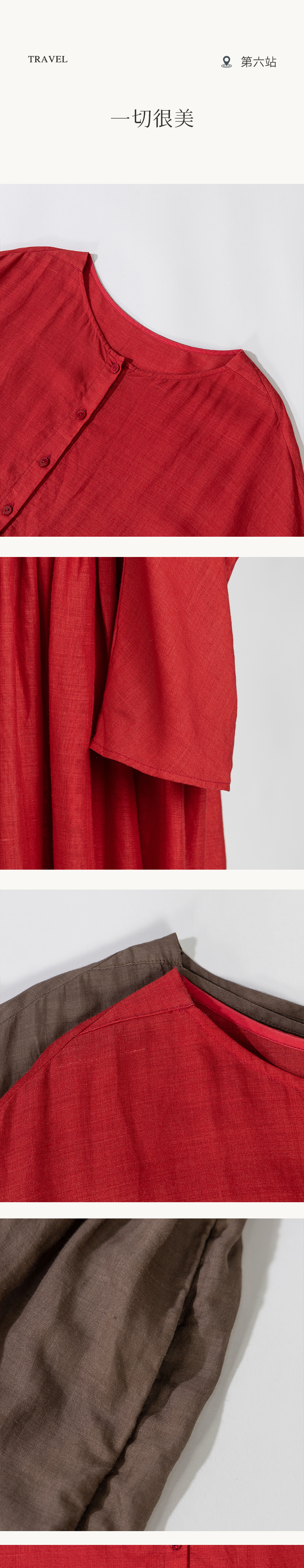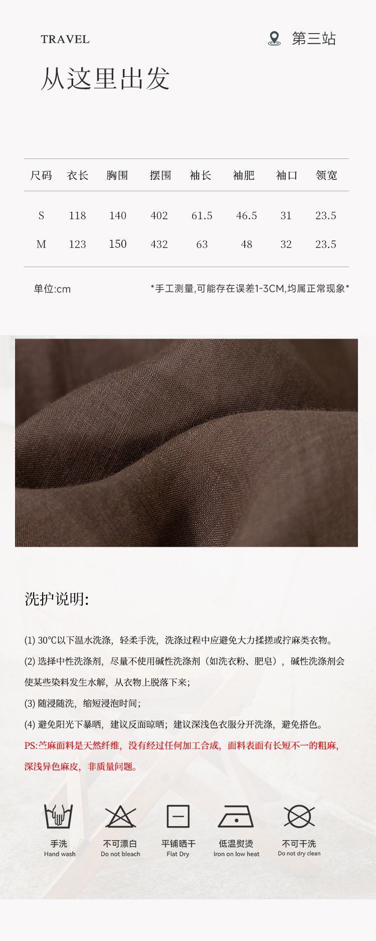 绽放旅行女装411朵/高支砂洗苎麻清凉透气宽松文艺圆领短袖连衣裙
