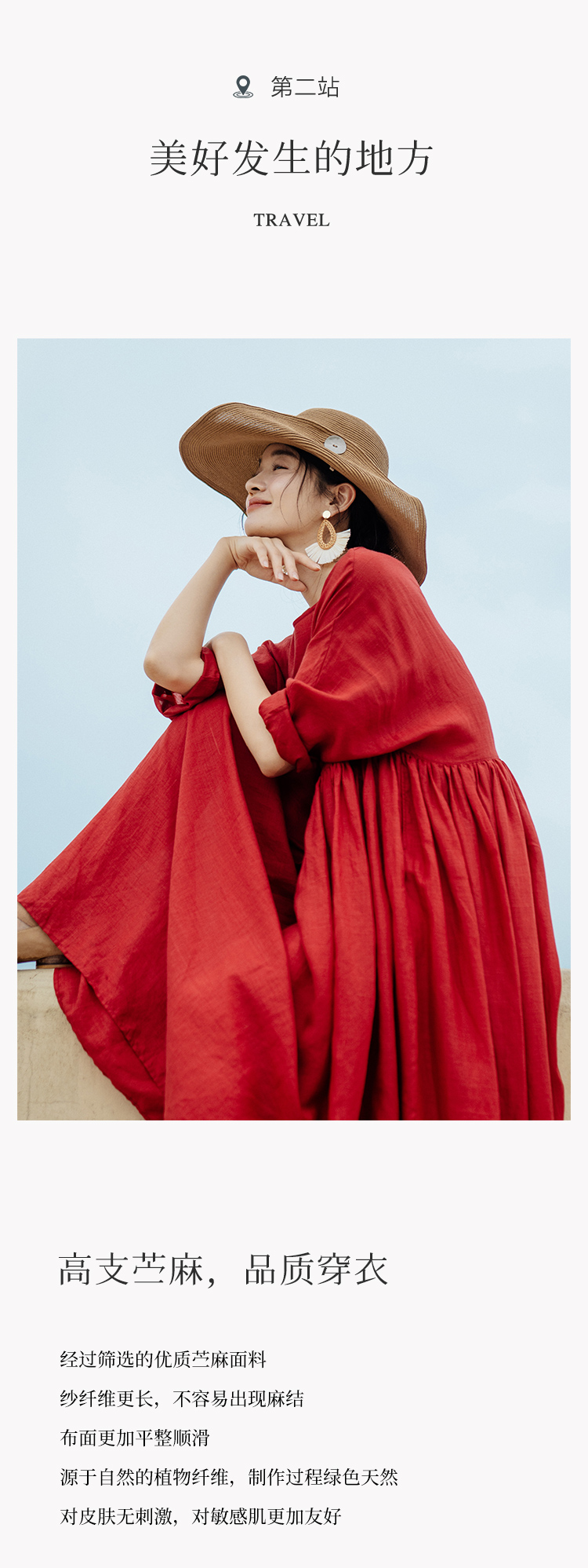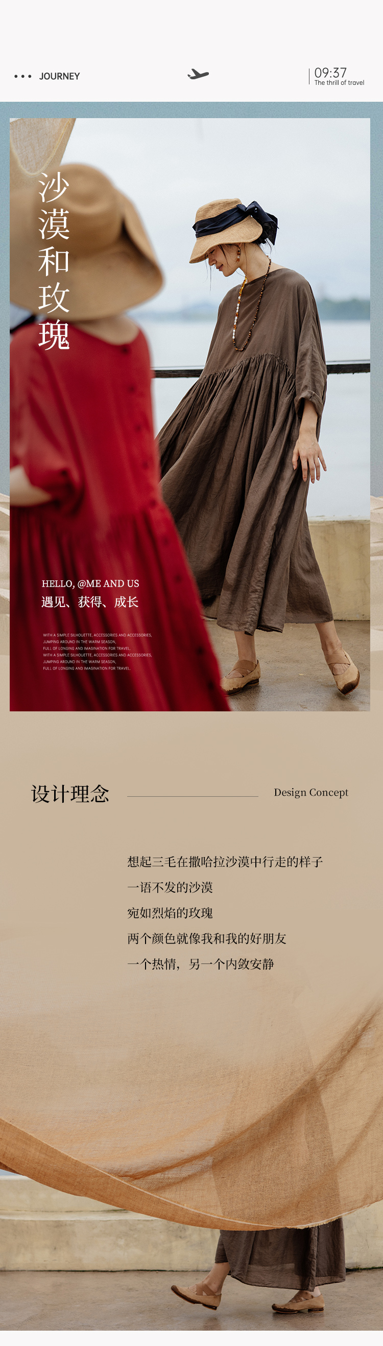 以天然亚麻为载体,融合热烈色彩与自在剪裁为身在城市、心怀远方的女性提供兼具美学与舒适的旅行着装
