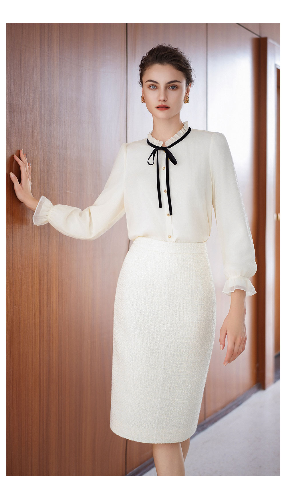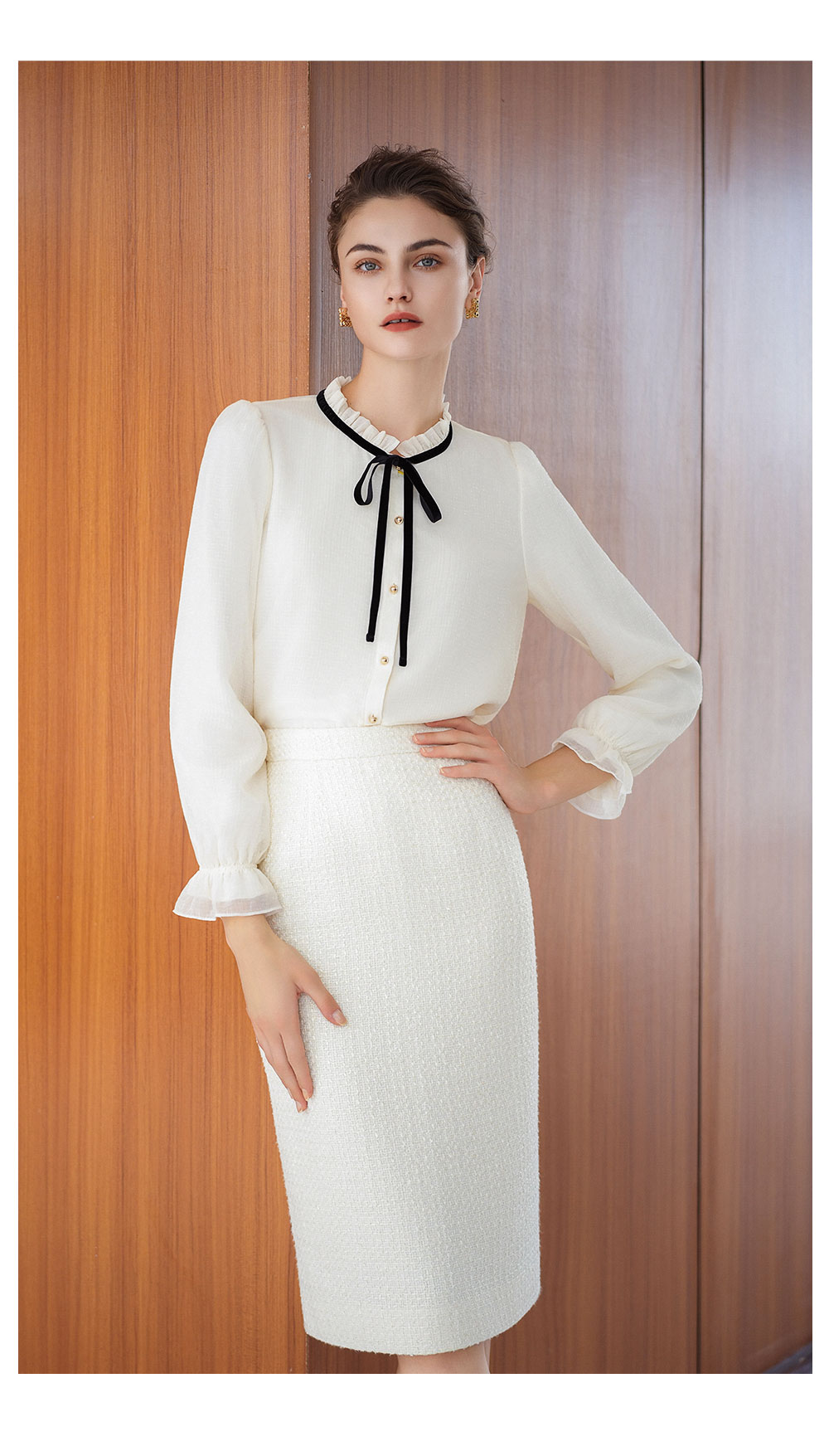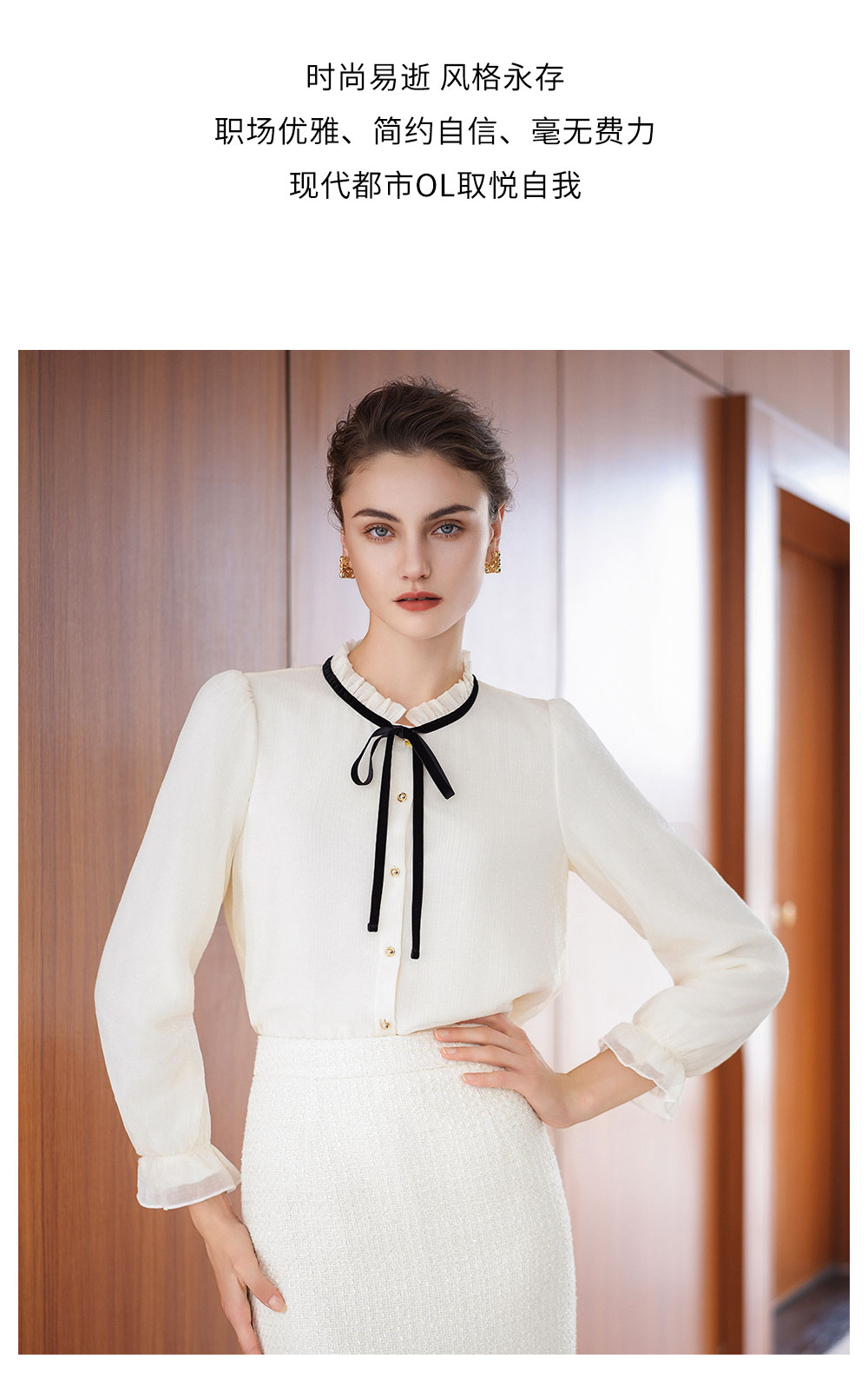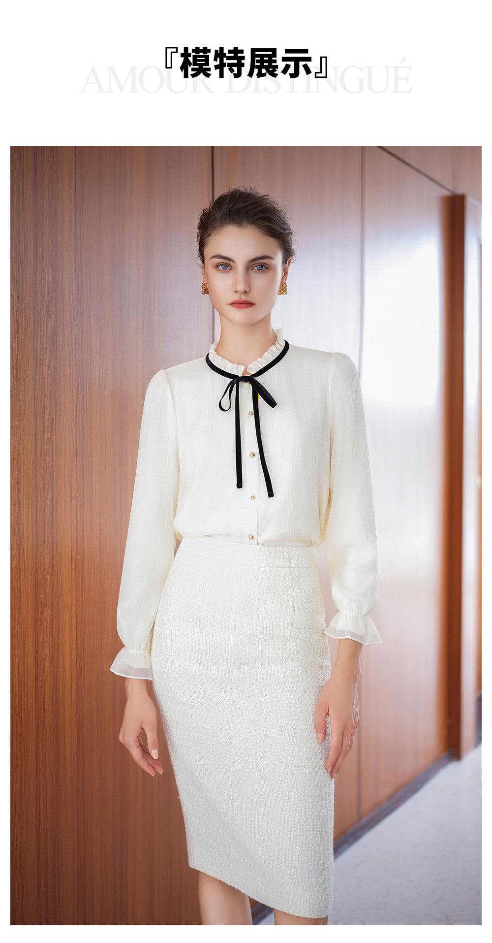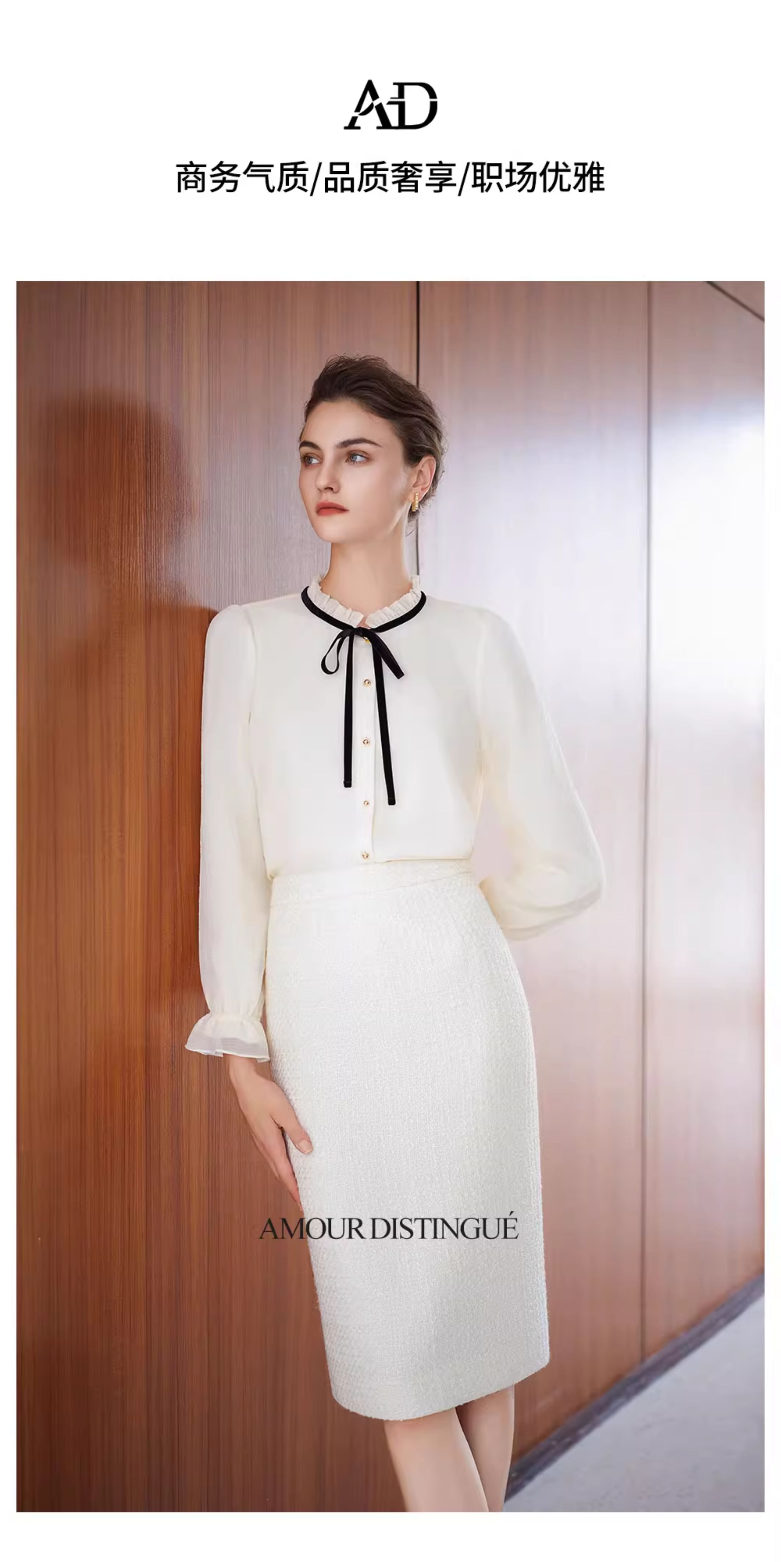AD高级感时髦精致套装2025新款小香风半裙百搭米白色系带名媛衬衫