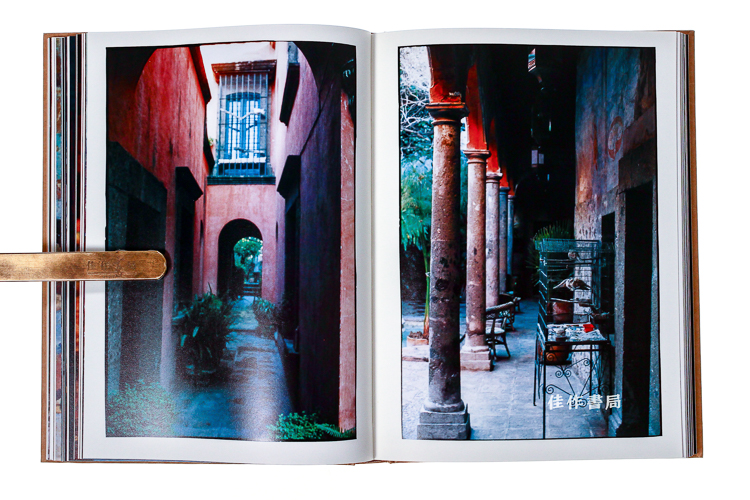 In the tradition of Kahlo and Allende, Turbeville’s brilliantly stylish portrait of her Mexican house evokes both her vivid imagination and the mystique of Mexico. High-ceilinged rooms surround a central courtyard that is lined with faded frescoes of biblical scenes. The glimmer and shafts of diffused light that stream into the courtyards and curtained rooms add to the romantic atmosphere—one feels as though they have entered into a quintessential Turbeville photograph. Turbeville has captured the spiritual nature of Mexican culture by incorporating into candlelit interiors such traditional religious artifacts as colorful painted tin retablos, hand-carved saints, wooden tableau boxes, and a central wooden figure of the local Virgin Saint Maria Candelaria: aged objets that are handmade, tell stories, and are arranged in artful vignettes. Casa No Name speaks of magic realism and beckons the reader into the private world of this visionary artist. Turbeville’s diaristic presentation of her home in the central highlands of Mexico is a welcome addition to her rich oeuvre and an inspiration for anyone interested in the soul and style of Mexico.