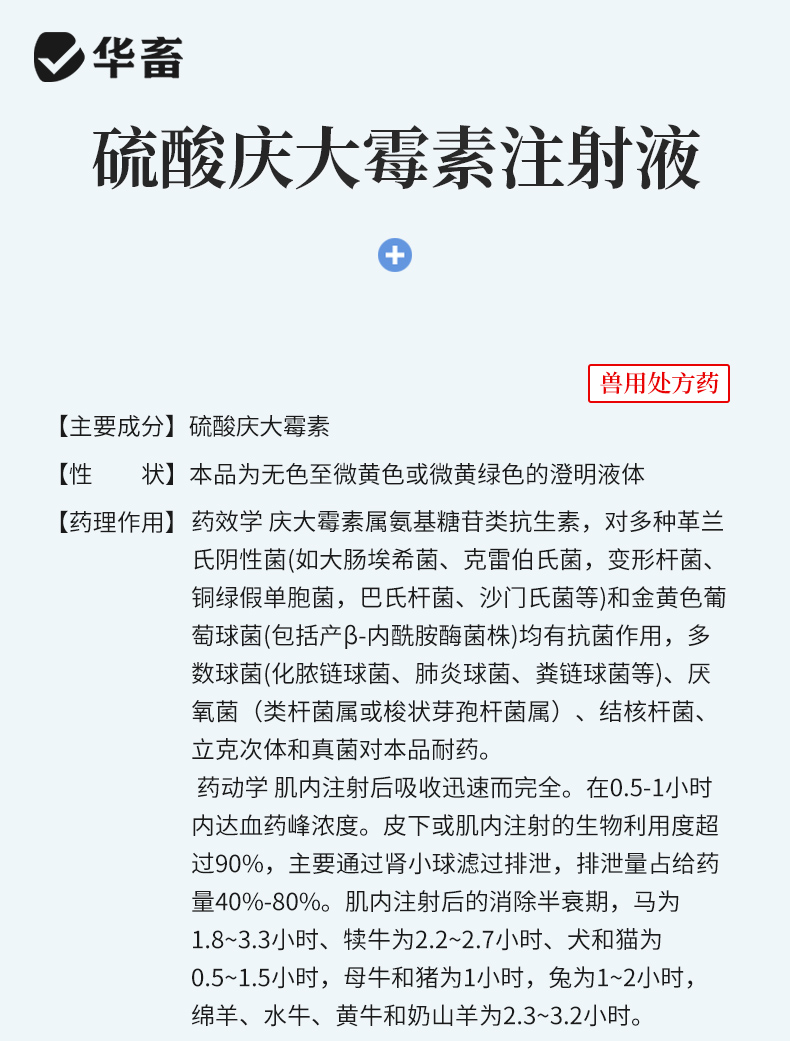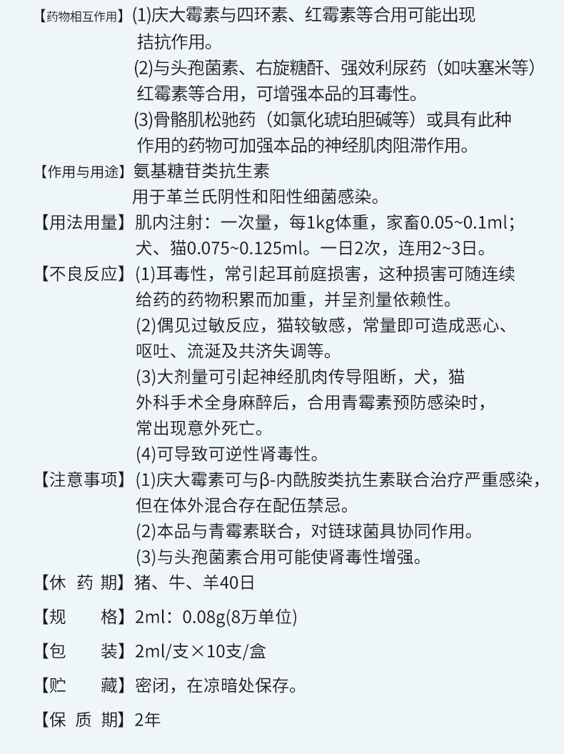 华畜硫酸庆大霉素注射液10支 败血症呼吸道感染 用于革兰氏阴性和阳性细菌感染