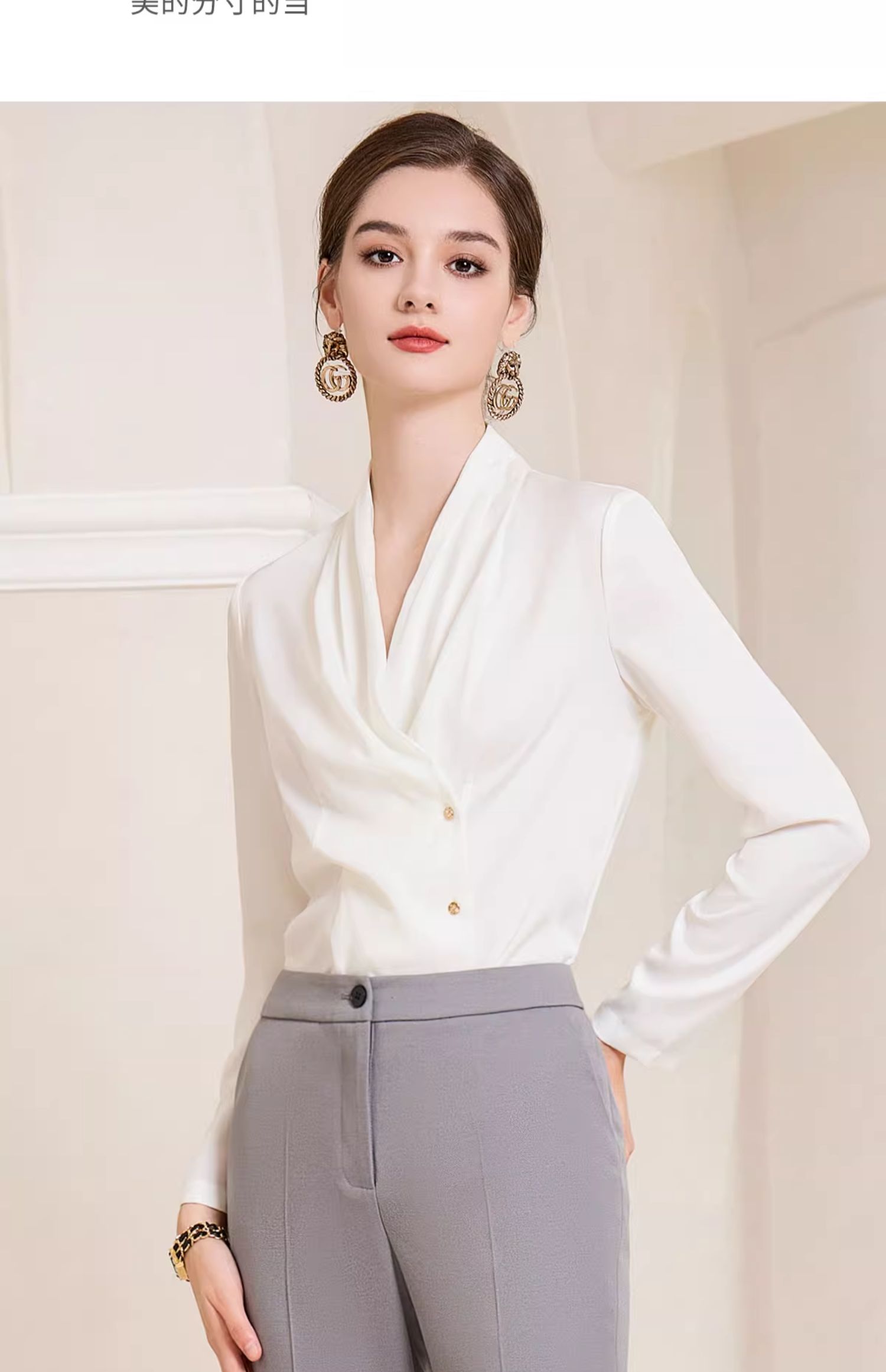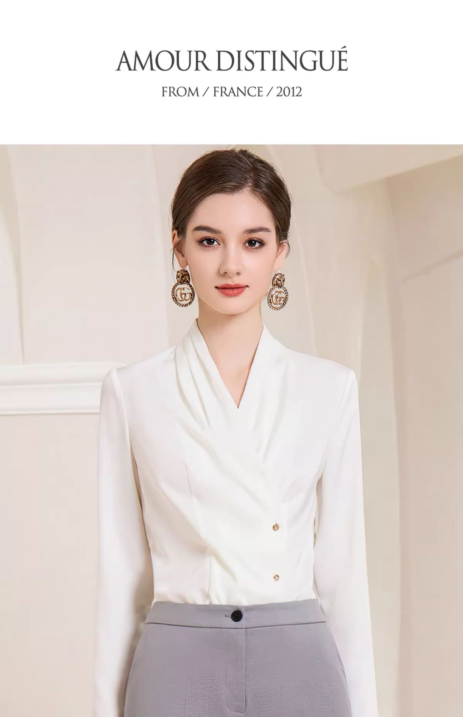 AD白色上衣轻熟法式小众衬衫职业装2023新款漂亮小衫纯色长袖衬衣