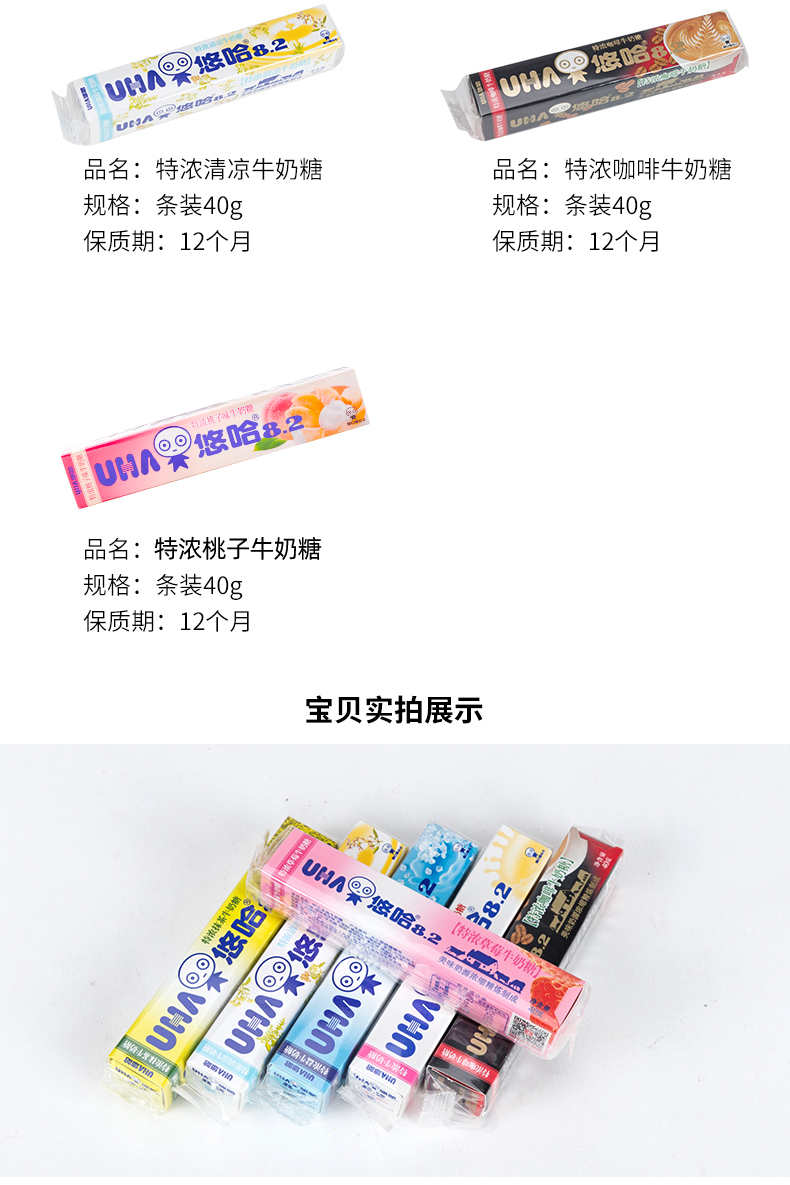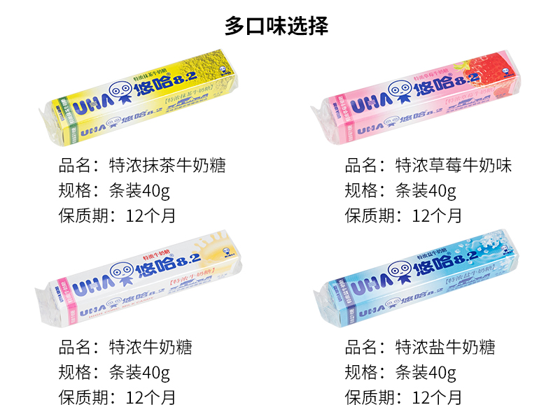 UHA悠哈特浓8.2牛奶糖牛奶味 40g 味觉条糖硬糖喜糖零食