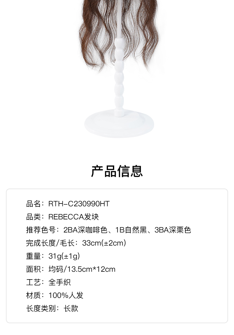 Rebecca瑞贝卡假发卷发假发片全真人发全手织补发片长款时尚补发片
