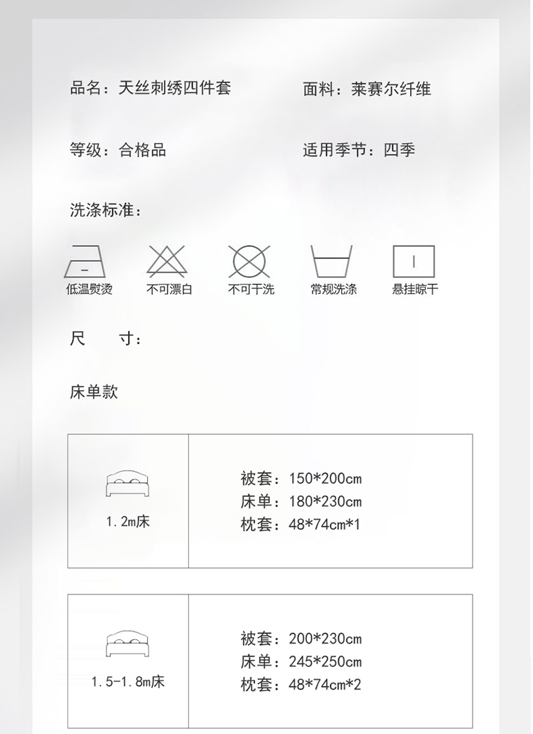 【品名】【2025春夏新品】恒源祥高品质天丝四件套 中华老字号严选 奢华质感 数码印花 柔软亲肤 床单床笠款可选 【规格】 刺绣款莱赛尔天丝:花韵-米白、花韵-天空蓝、花韵-奶油 数码印花款莱赛尔天丝:波漫、馥郁、花岛迷你、花开富贵、蓝花遍地、桃花朵朵 数码印花款兰精天丝:繁花似锦、繁花挽风、和煦、花开寒影、锦秀、寻芳 【尺寸】 床单款:1.5米-1.8米床通用 床笠款:1.5米/1.8米 【产地】国内 【材质】莱赛尔纤维 【发货包装】独立包装 【发货地】江苏 【发货快递】极兔、韵达、邮政随机发 【不发货区域】新疆、西藏、港澳台 【发货时效】48-72小时,周末节假日顺延 |