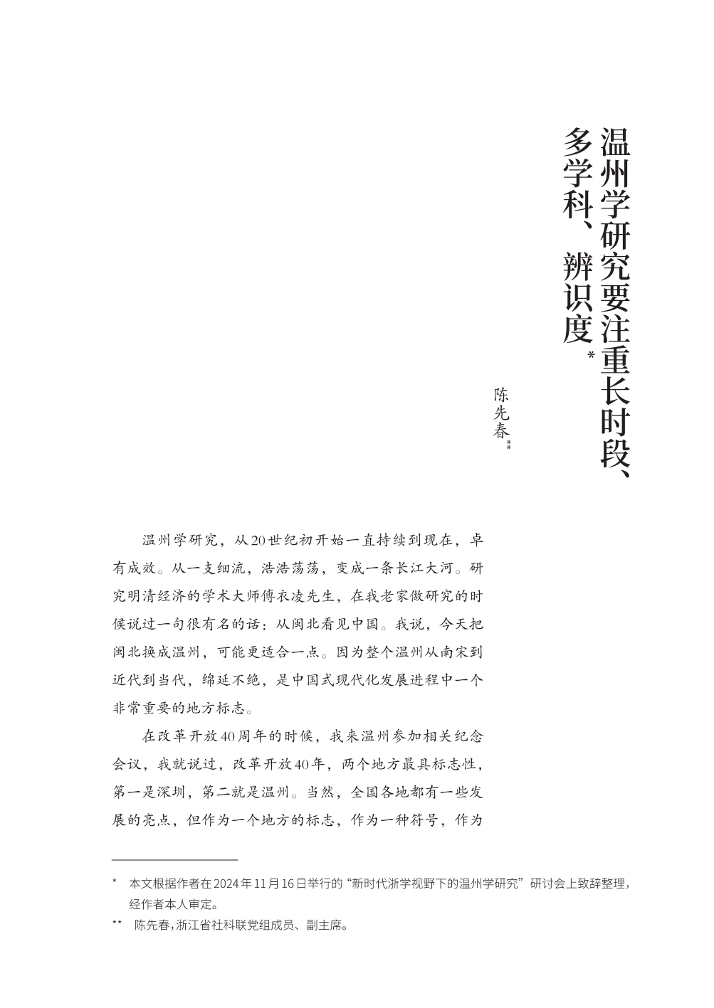 温州学研究要注重长时段、多学科、辨识度 陈先春 001