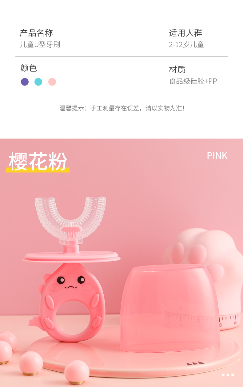 【护牙神器】开优米kiuimi儿童u型牙刷手动宝宝1岁半2-3-4-6岁以上u形硅胶软毛刷牙卡通牙刷