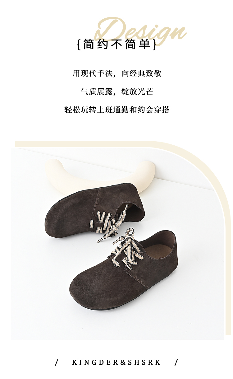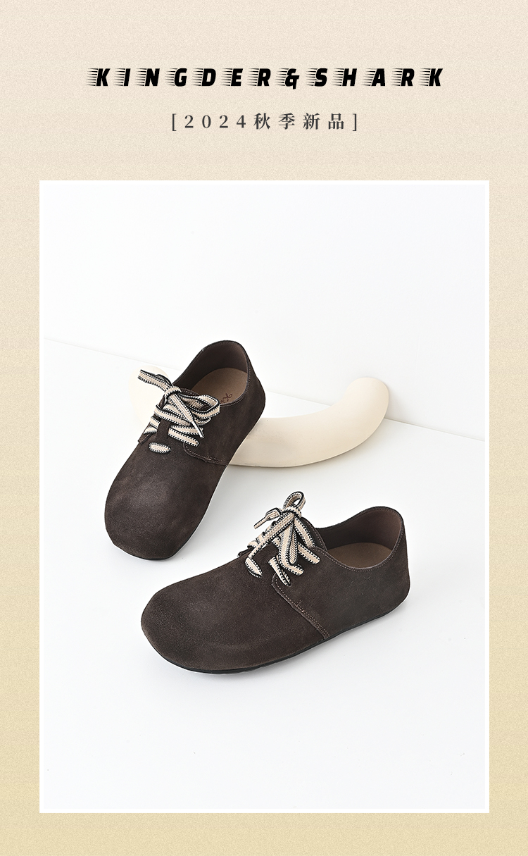 经典鲨2024年秋新款百搭圆头系带平底舒适通勤休闲鞋单鞋女KW161-D37161