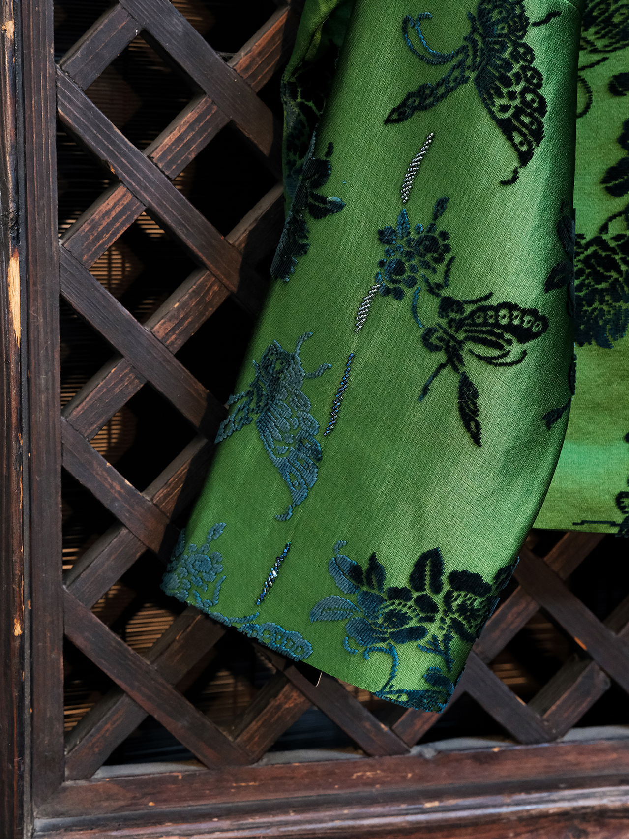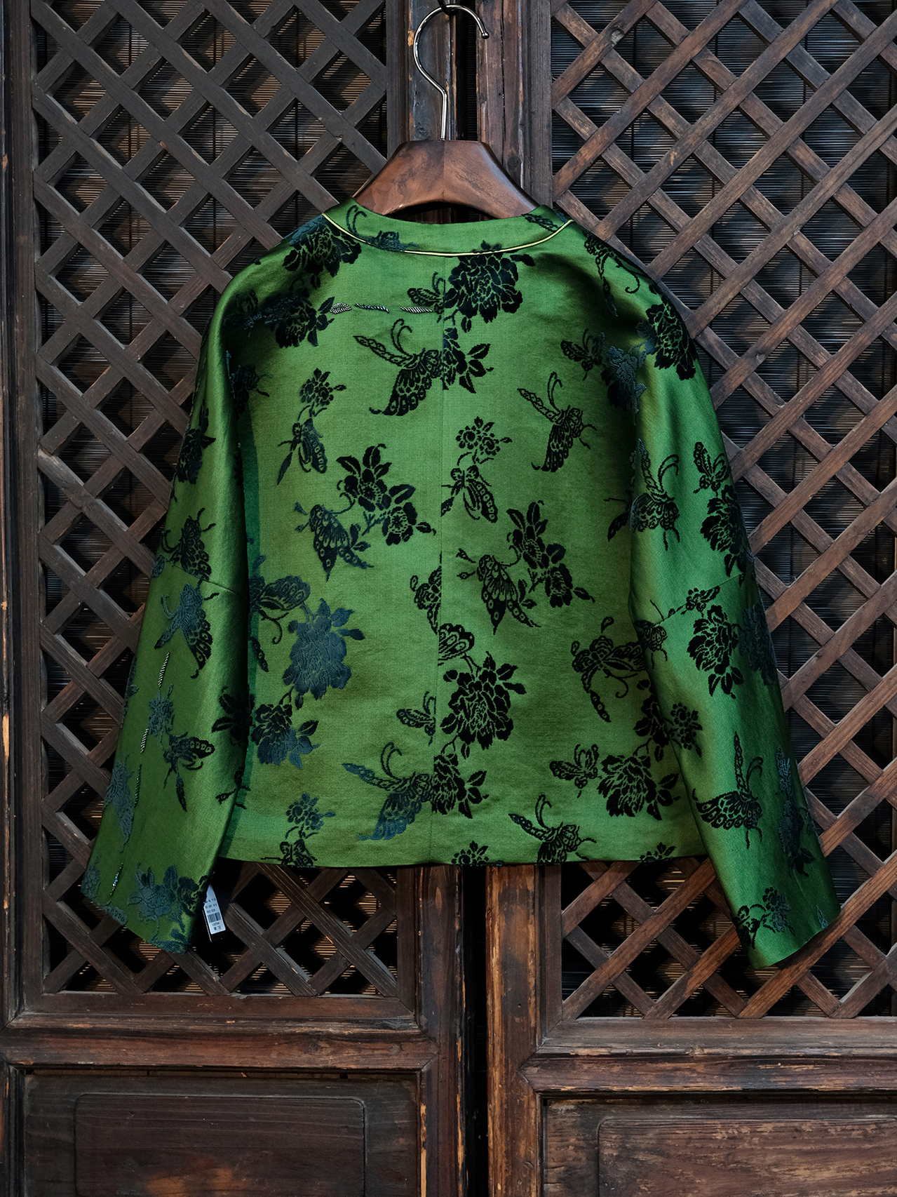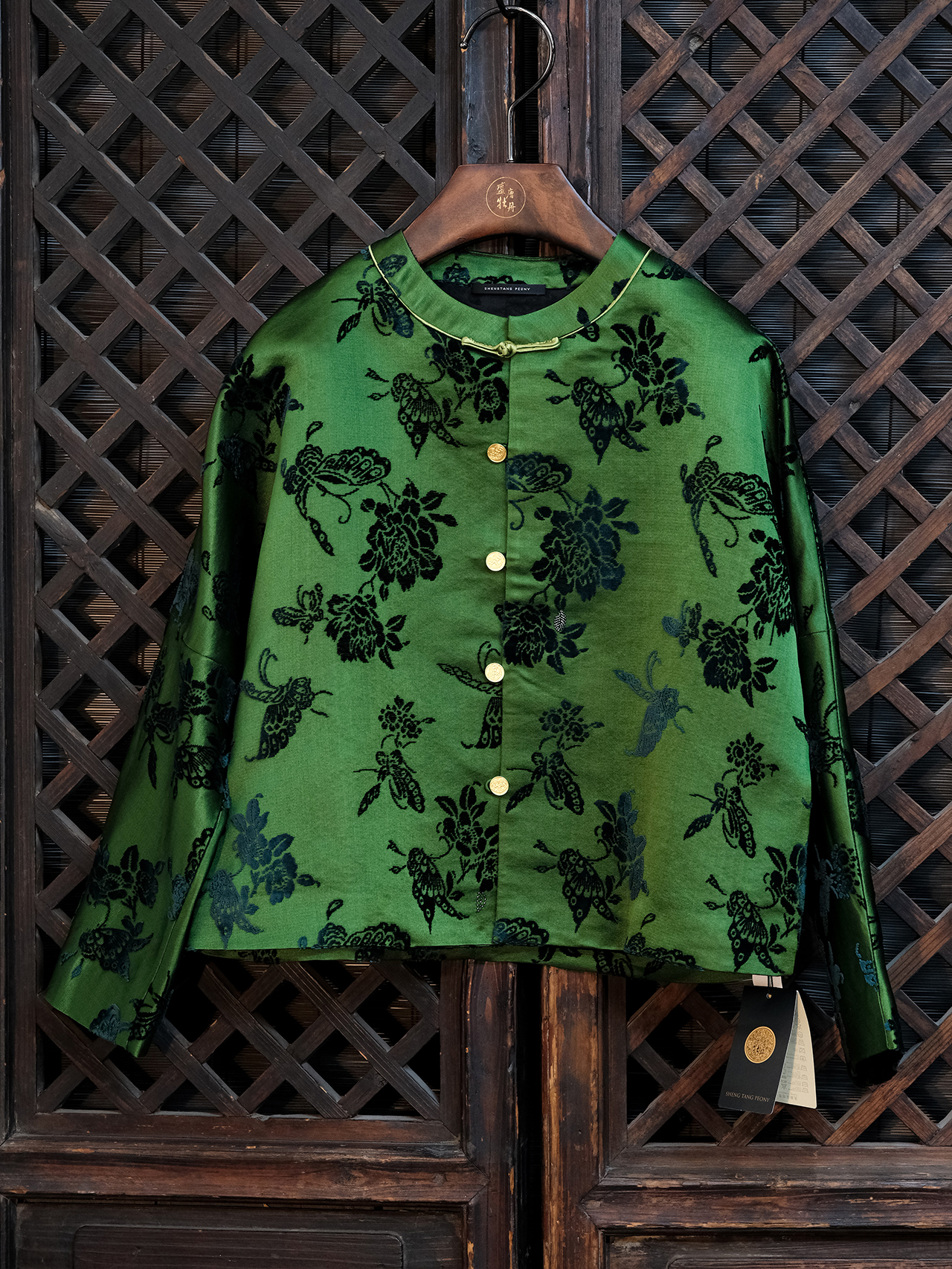 盛唐牡丹| 翡翠绿蝶恋花漳缎外套-钉珠款(钉珠花纹随机)