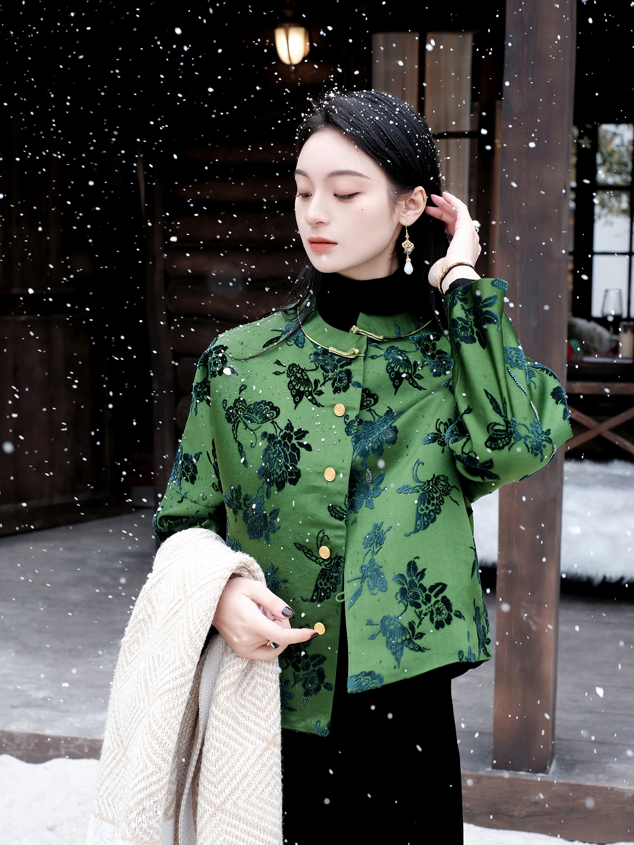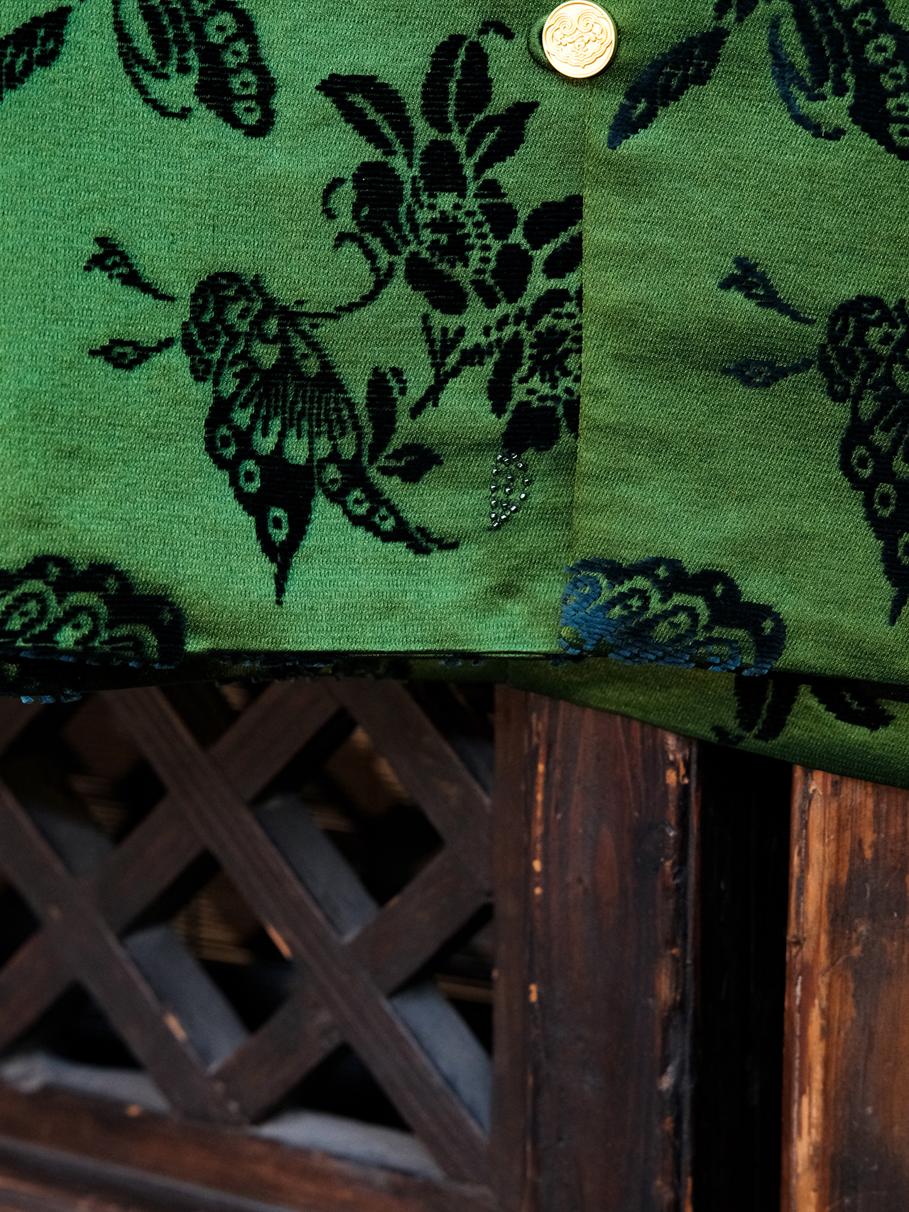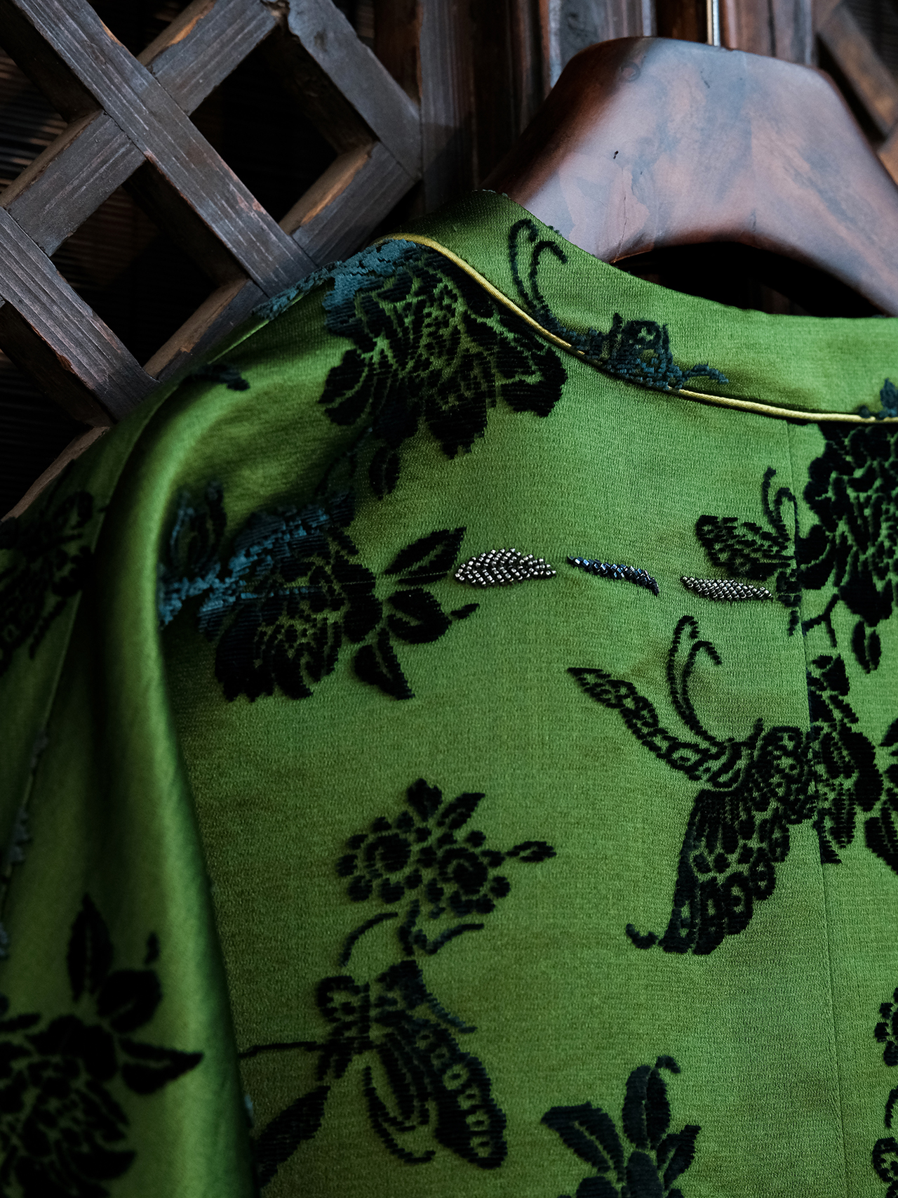 盛唐牡丹| 翡翠绿蝶恋花漳缎外套-钉珠款(钉珠花纹随机)