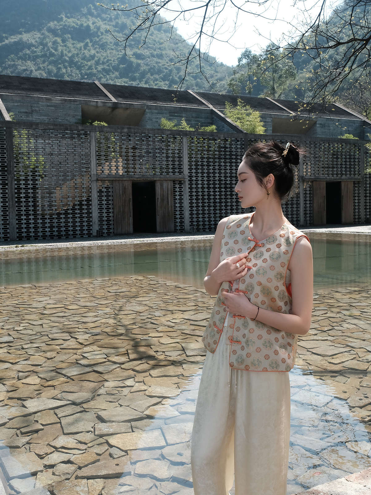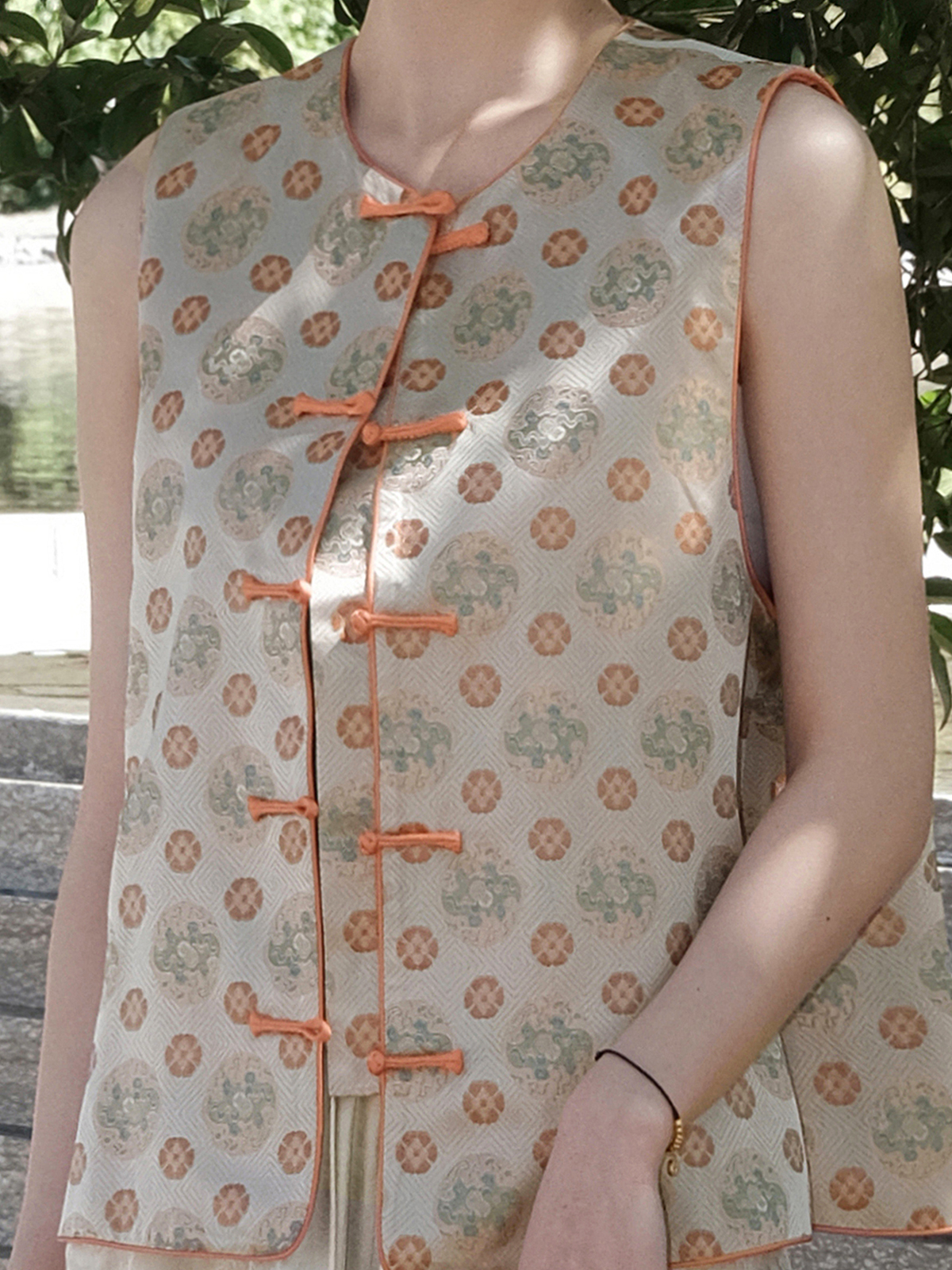 盛唐婧 |真丝宋锦钱币纹对襟马甲