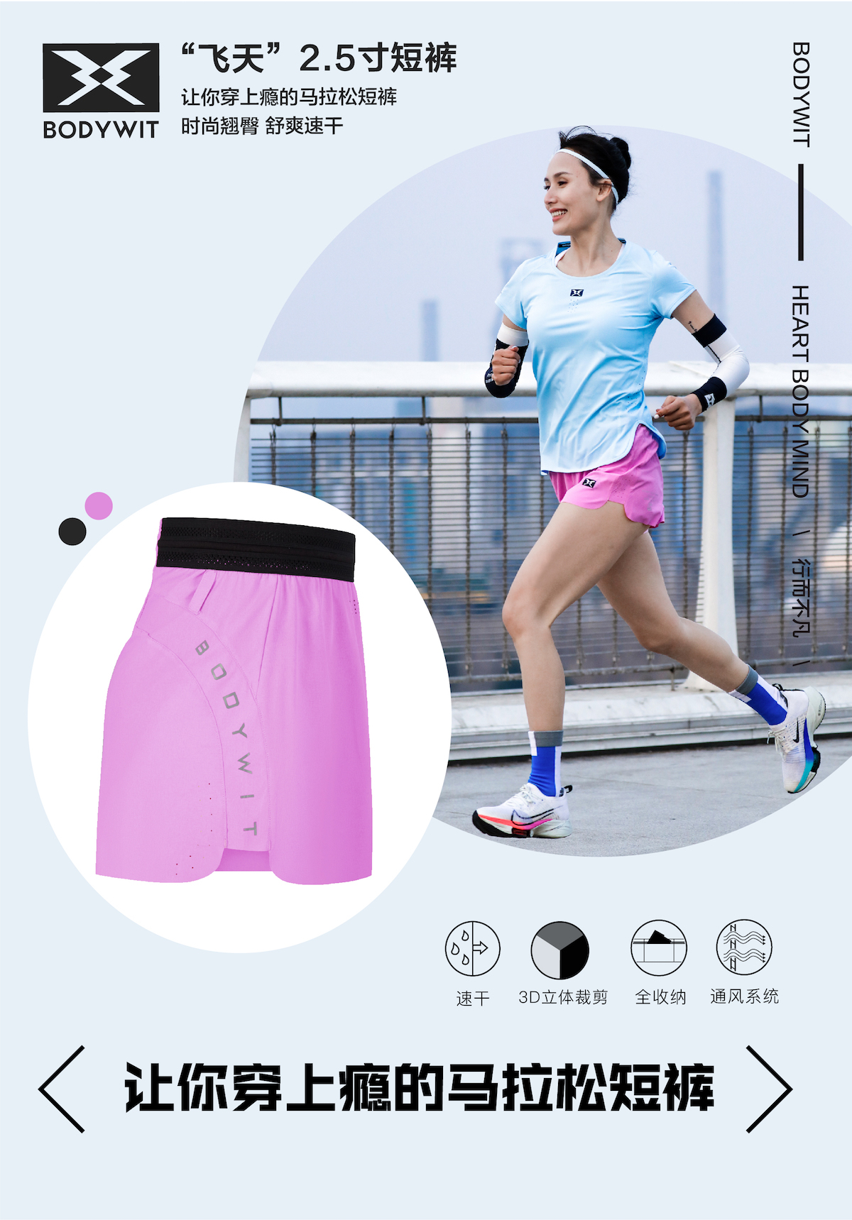 BODYWIT身体智慧飞天女2.5寸竞速短裤跑步速干防走光内衬透气凉爽