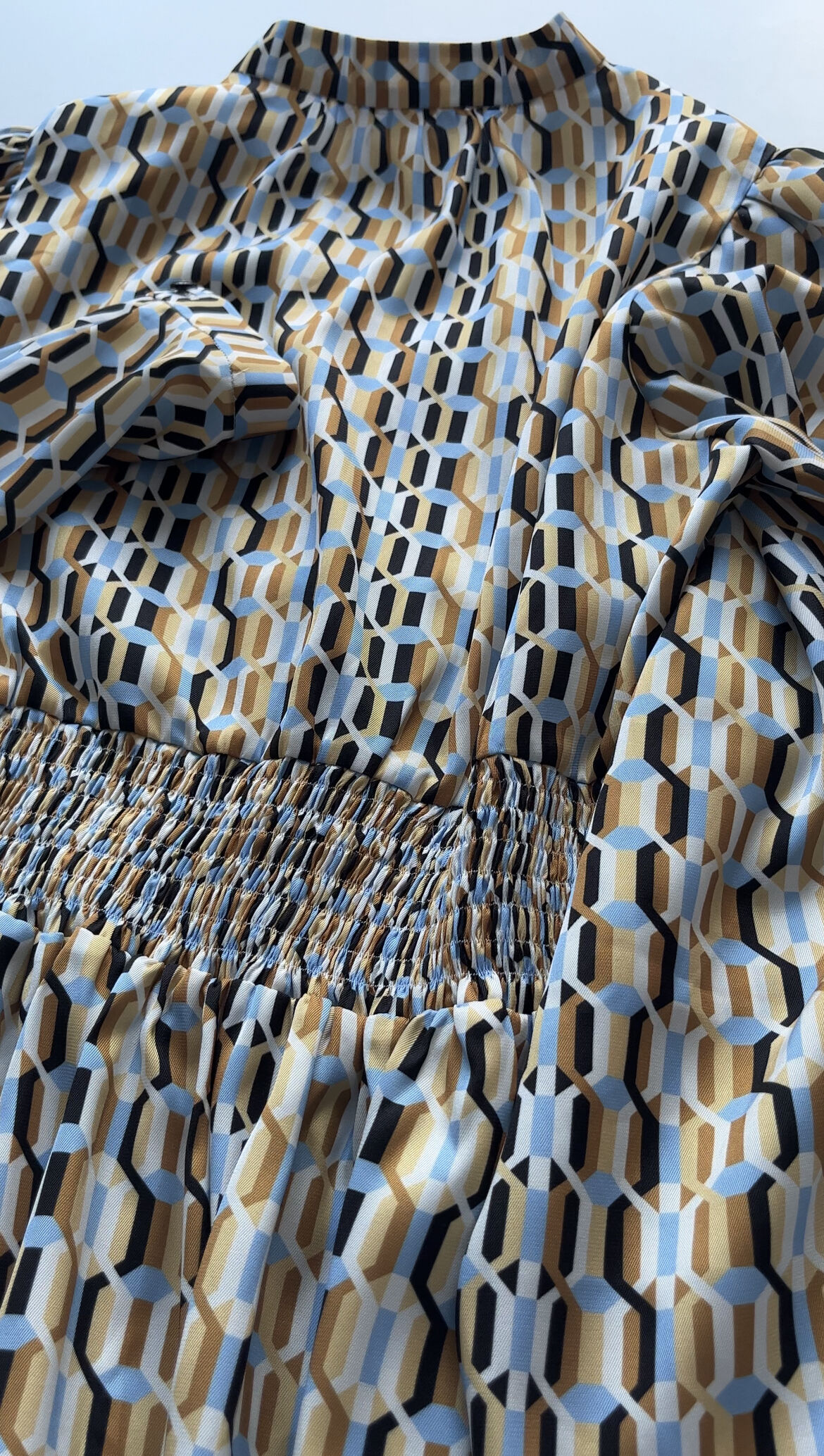 定制—法式风—几何立体图案印花春夏时尚长袖优雅连衣裙 2201099