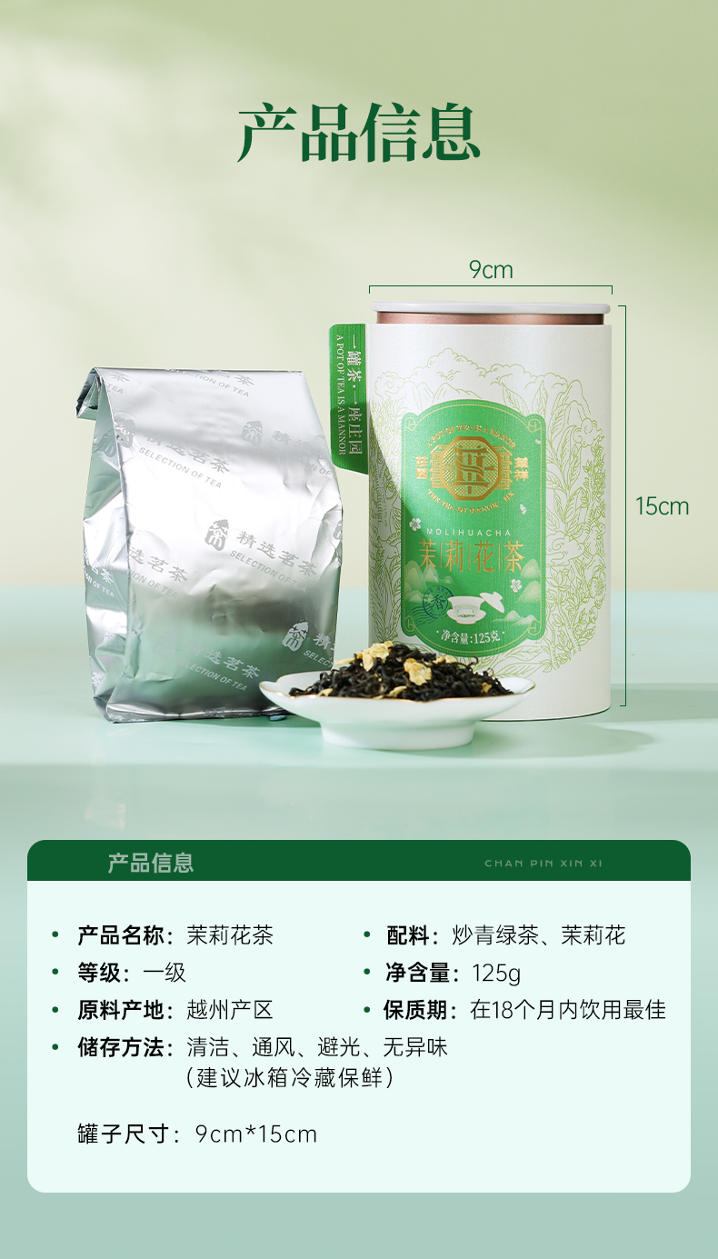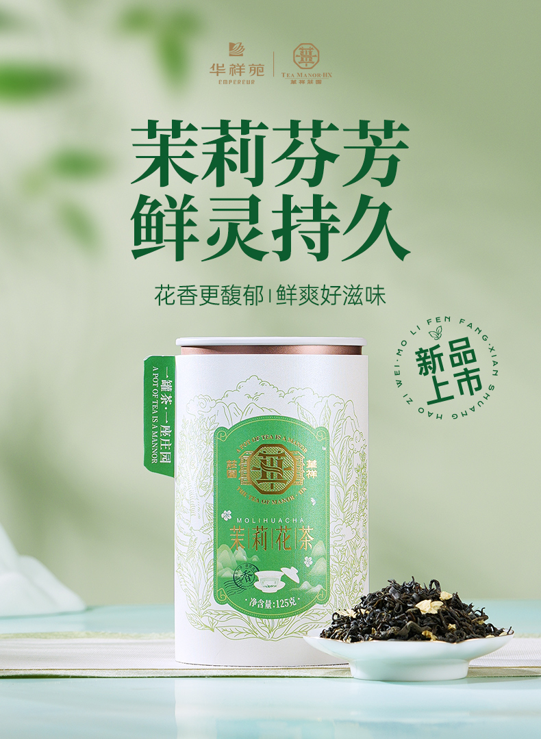 【送试泡】25年新茶华祥苑茉莉花茶绿茶125g正品罐装