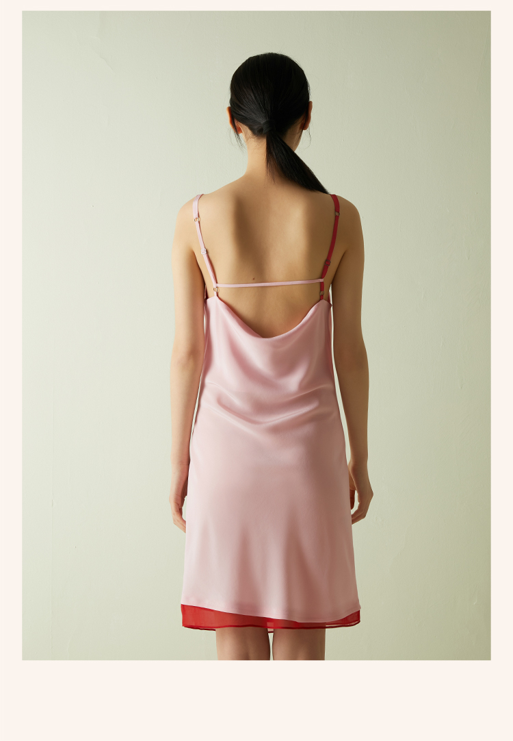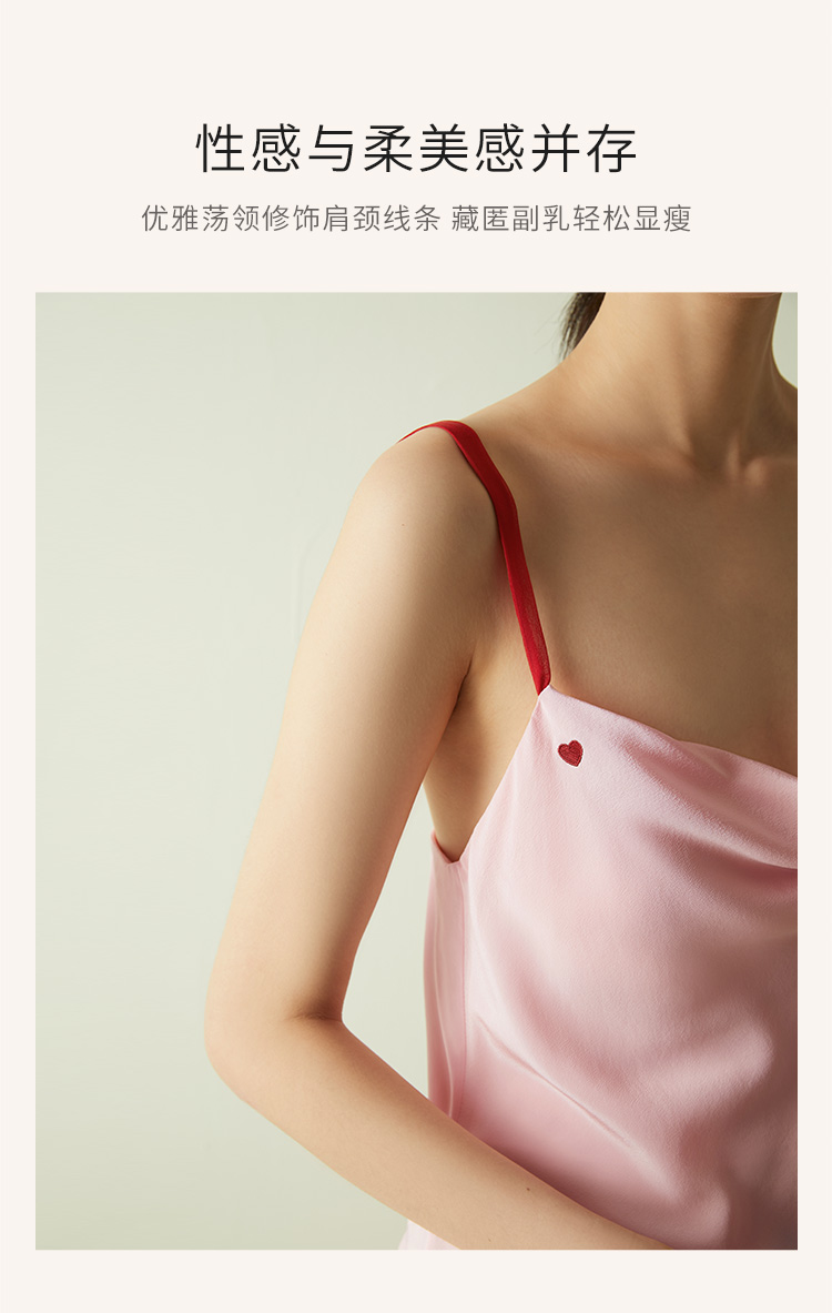 新品桑罗七夕礼物情人节爱心撞色吊带裙