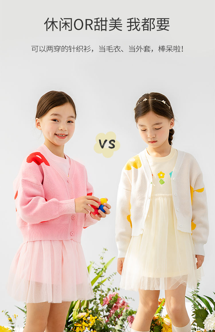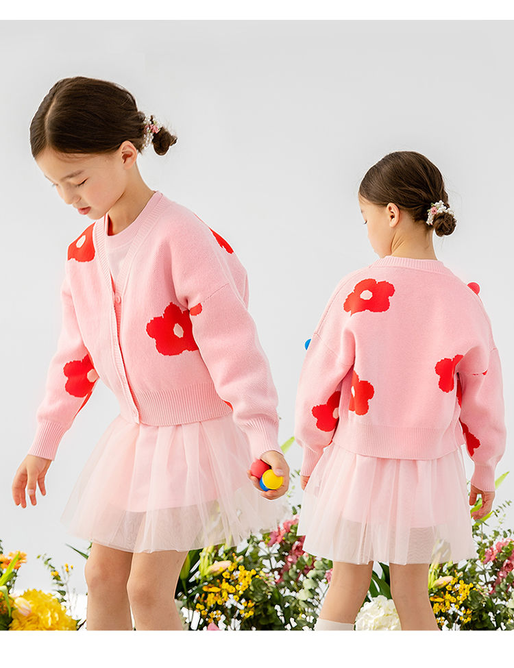 贝贝怡针织开衫宝宝外套毛衣春秋女童洋气针织开衫韩版上衣爆款221S2902