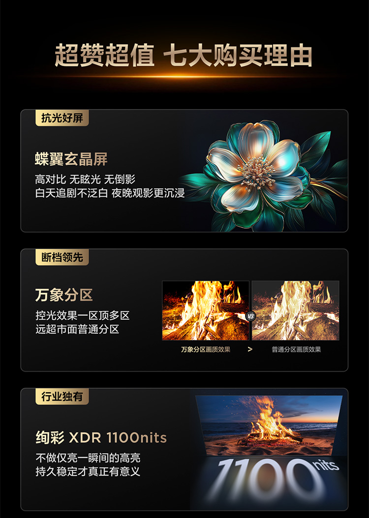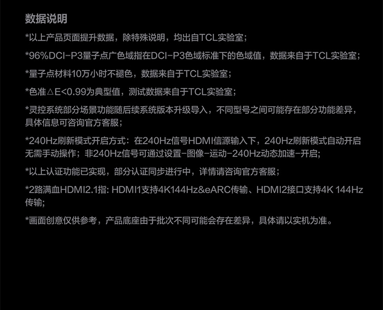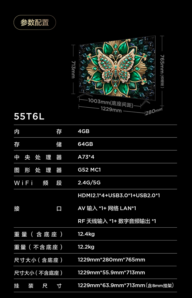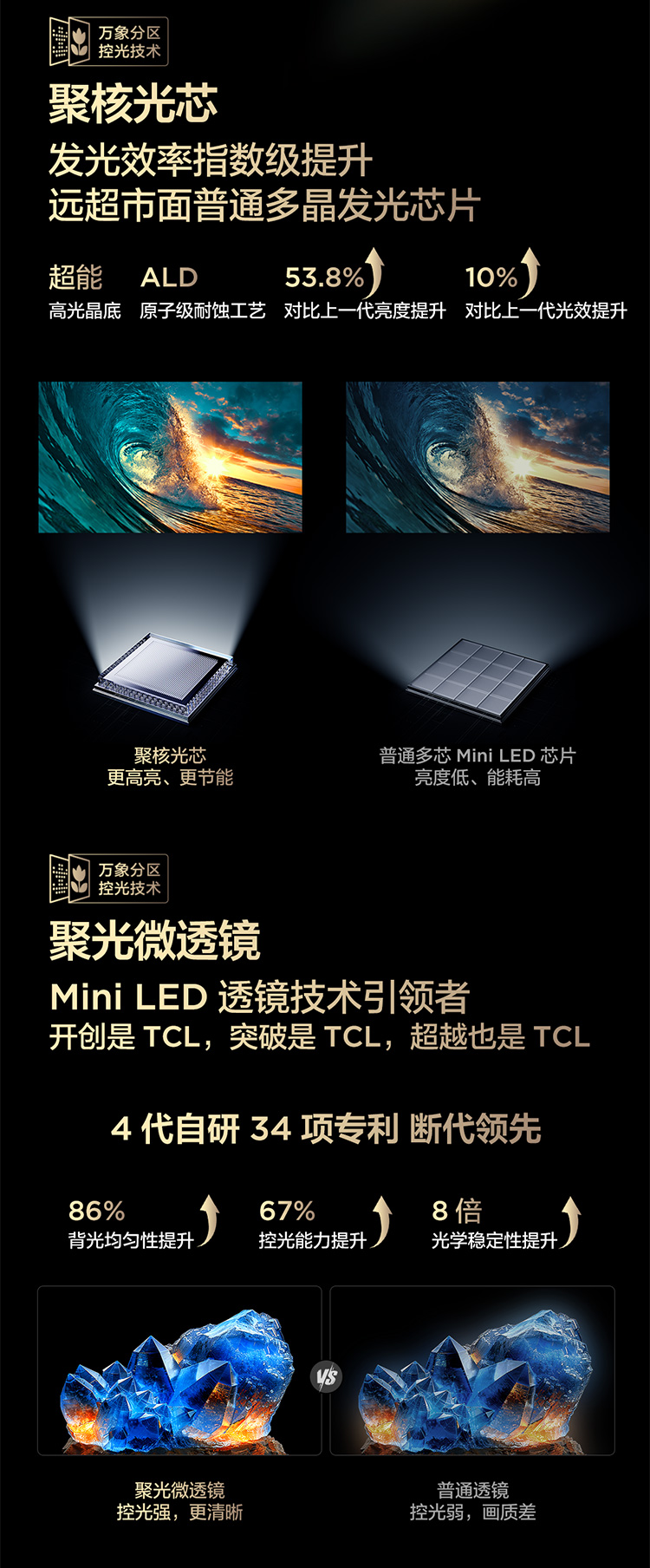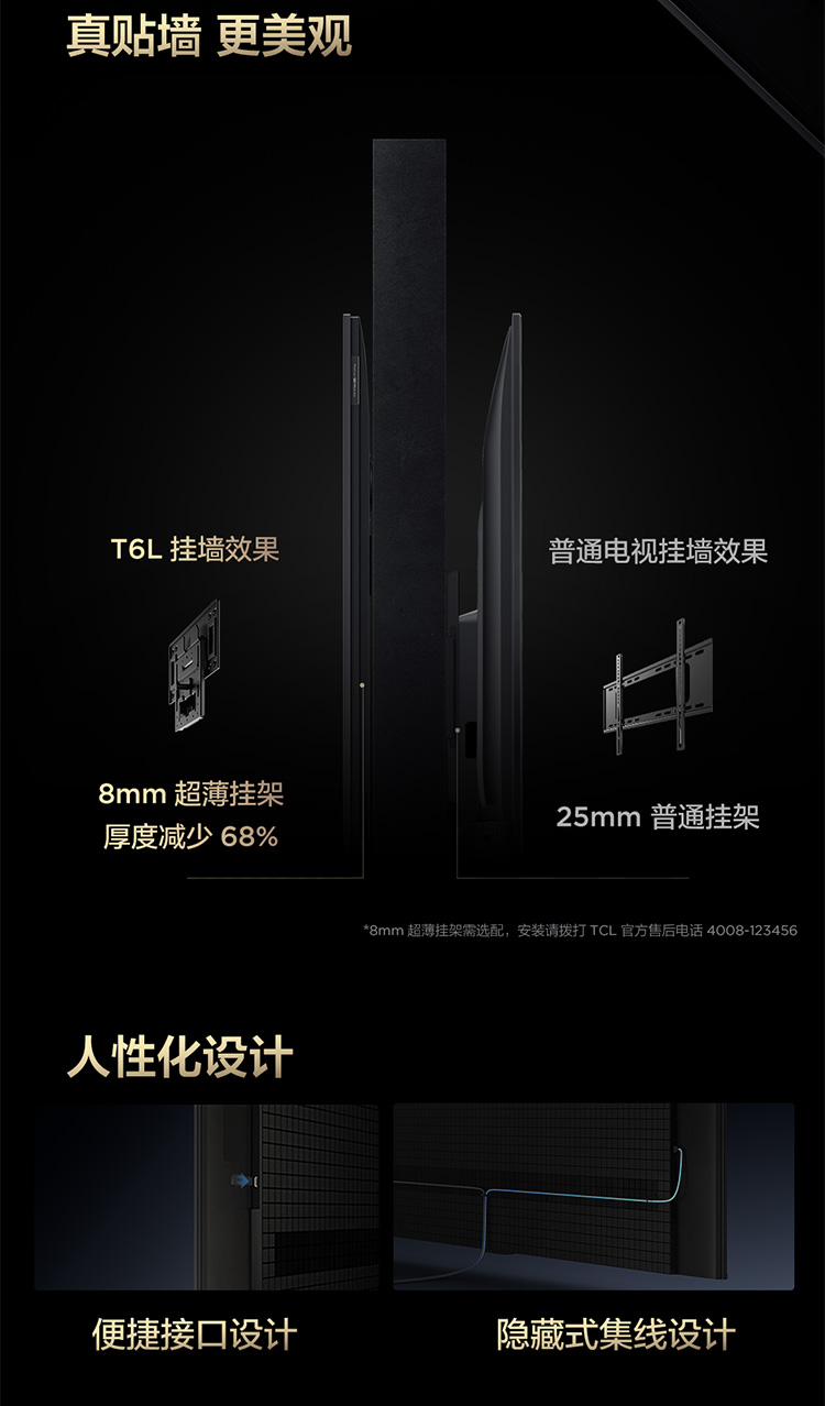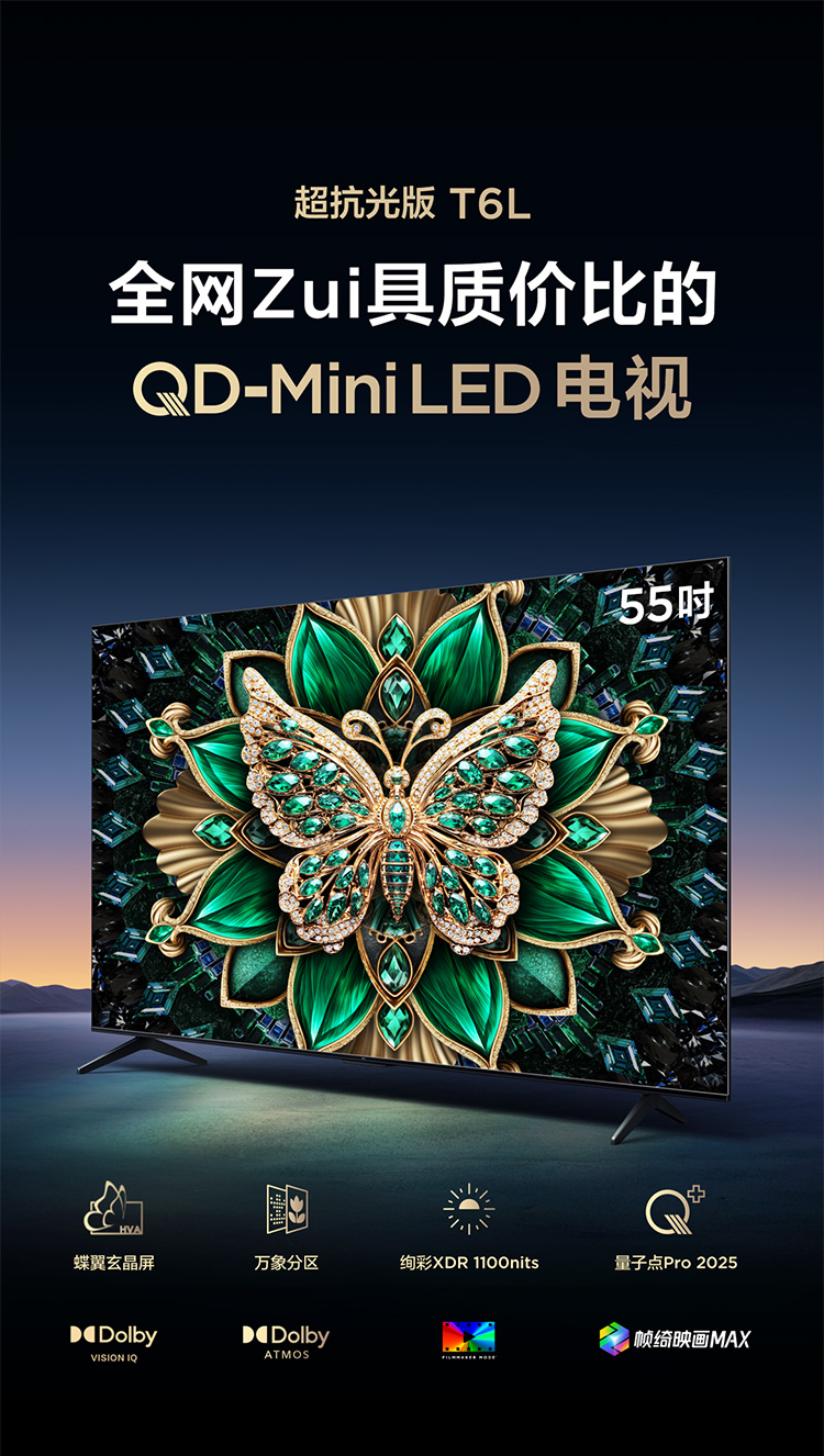 【TCL电视】 55T6L 55英寸 QD-Mini LED 万象分区 QLED量子点 绚彩XDR 1100nits 超薄电视