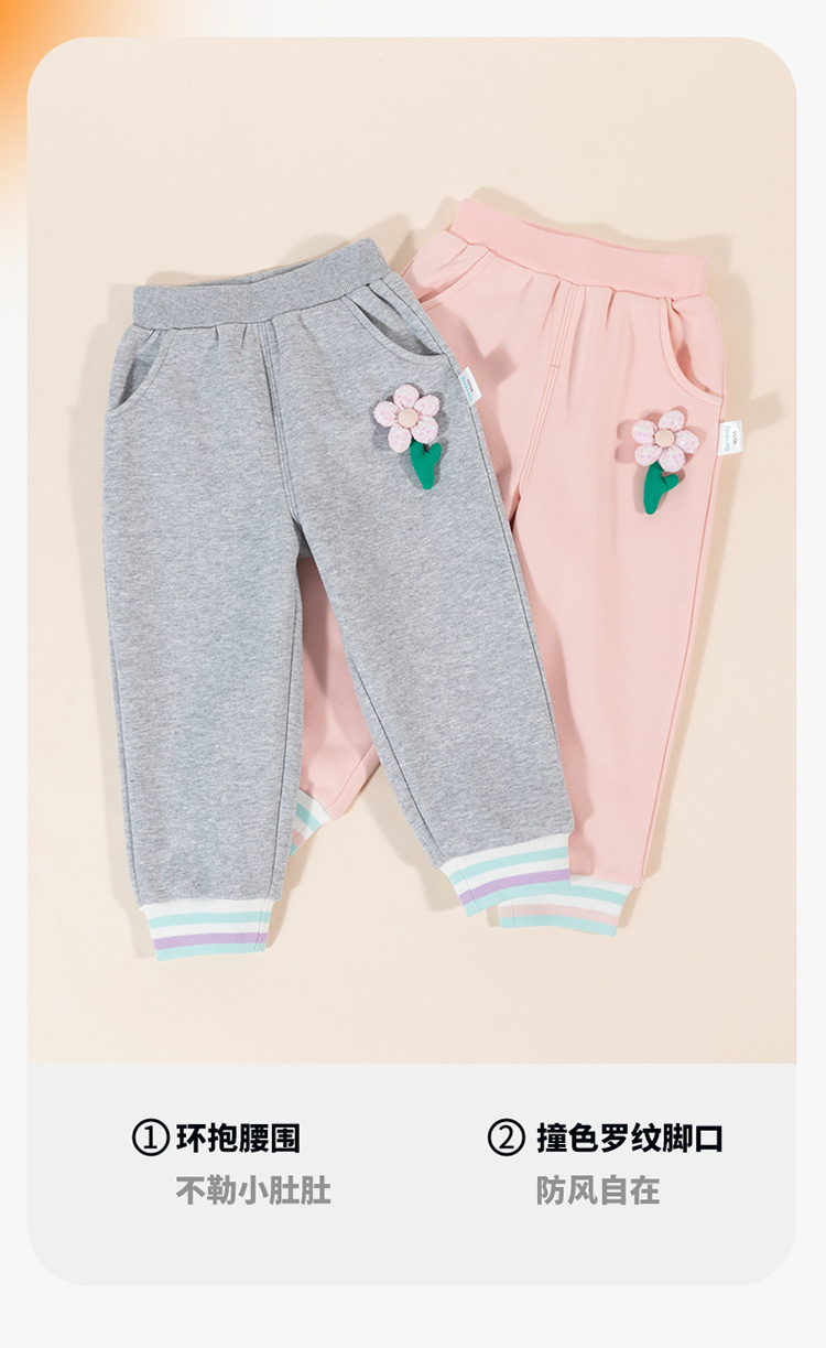 贝贝怡童装秋冬新款女童时尚休闲加绒长裤保暖束脚裤女宝宝运动裤233K2565