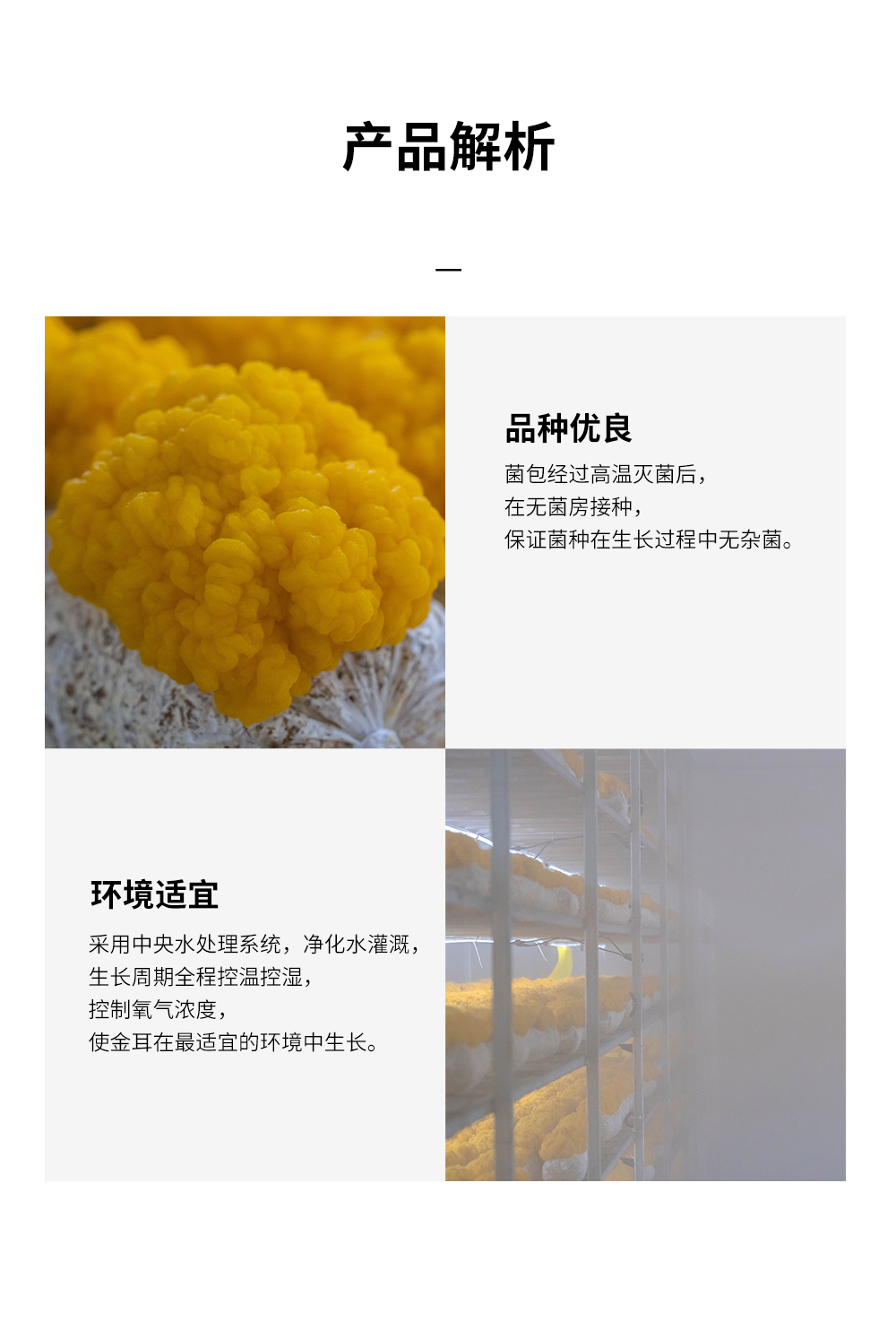 3、金耳表面可能会存在少许白点属于正常现象,是在裂瓣处未充分受光的原因。