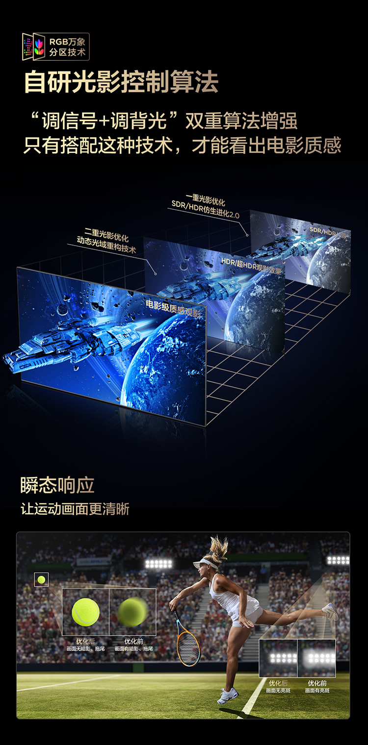 【新品上市】TCL电视 75Q9M 75英寸 RGB-Mini LED 100%BT.2020高色域 RGB万象分区 蝶翼星曜屏 超薄电视