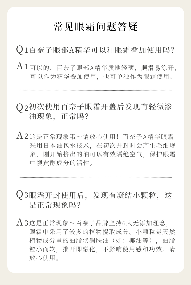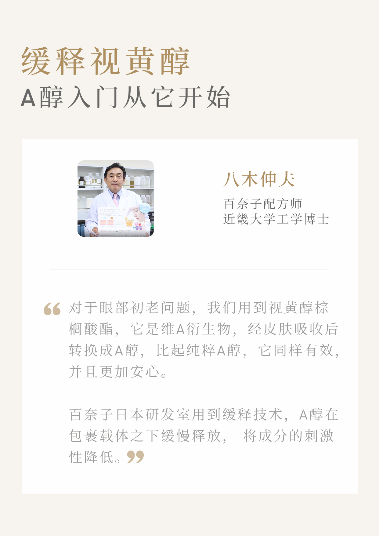 适合的人群:寻找入门级别眼霜的人群,眼周问题不是太严重的人群,没有明显的眼周问题并想预防问题出现的人群。由于视黄醇的浓度非常低,且使用范围很小,从这个角度考虑,孕哺都可以使用。