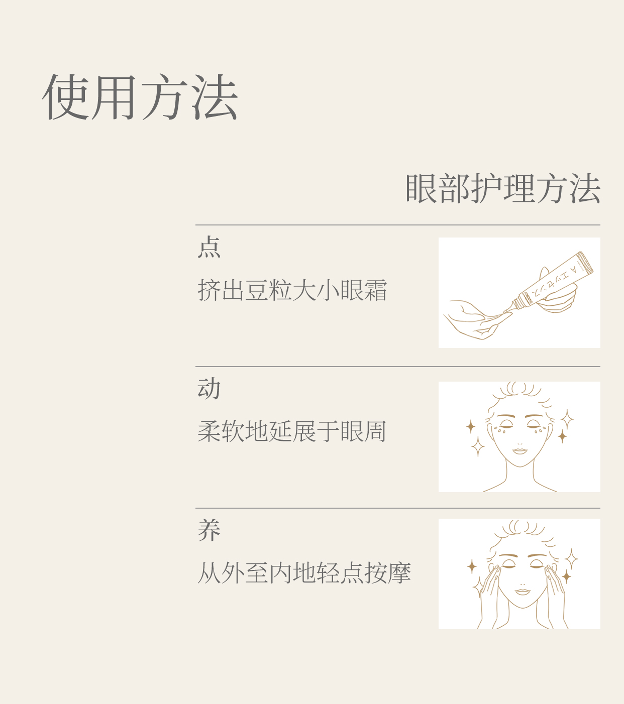 Lauren推荐的用法:取适量眼霜当眼膜薄敷,等20分钟后擦掉残留。另外还可以当颈霜或者手霜使用。