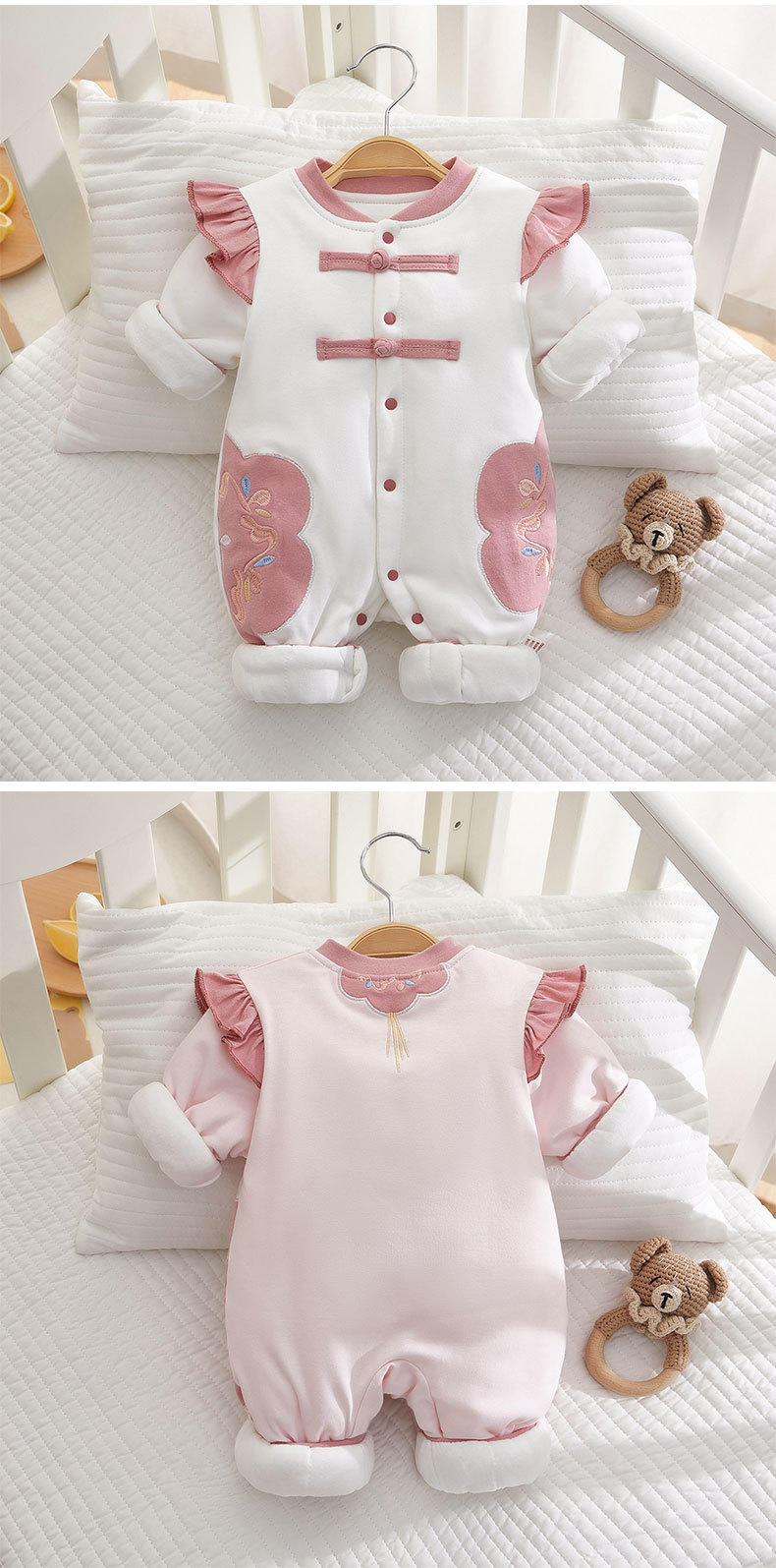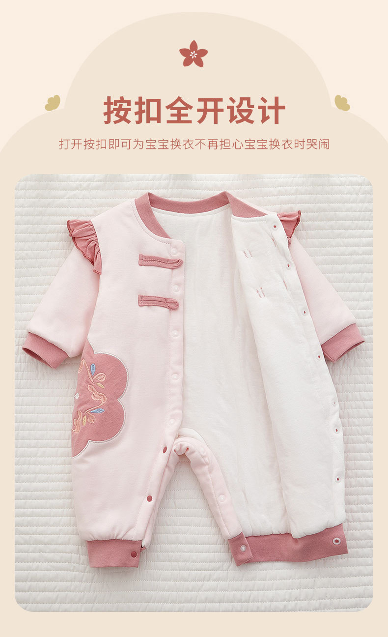 【国风120g夹棉新生儿连体衣】衣服秋冬A类婴儿连体衣无骨女宝宝国风哈衣爬爬服
