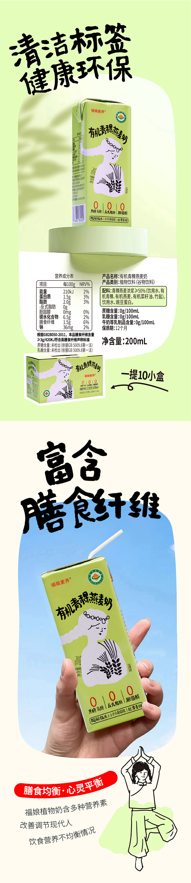 福娘 有机燕麦奶/有机青稞燕麦奶 植物奶 200ml*10盒/箱