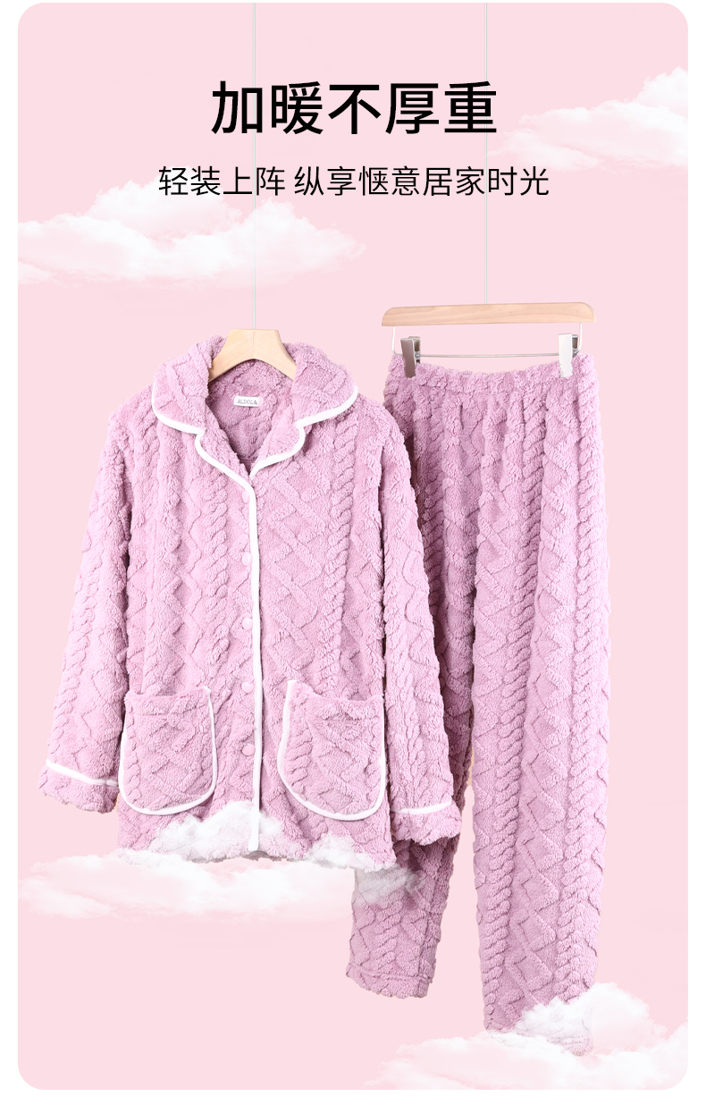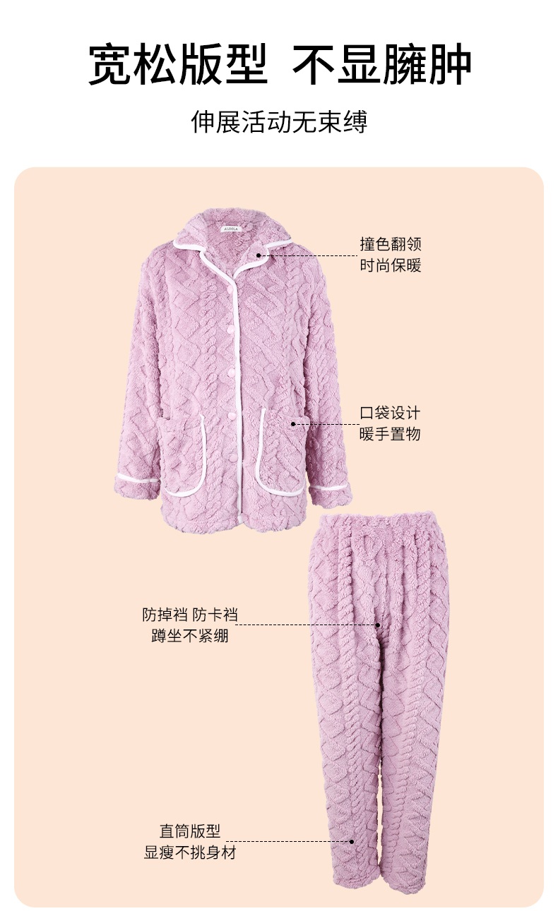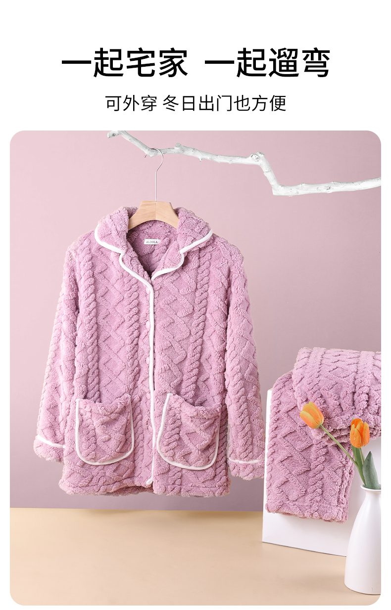 雅黛丽睡衣女冬季加绒加厚保暖家居服套装珊瑚绒休闲大码可外穿女