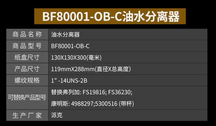 派克 油水分离器 BF80001-OB-C 东风天龙/雷诺DCI11升发动机